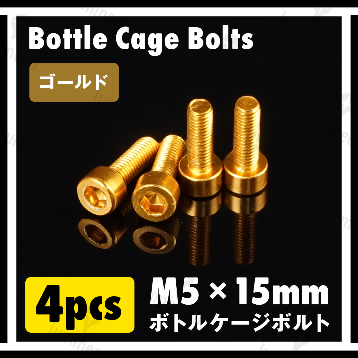 ボルト M5×15mm 4本 セット アルミニウム 六角 軽量 ホルダー ボトルケージ ボルト 自転車 クロスバイク ロードバイク ゴールド g060g 1