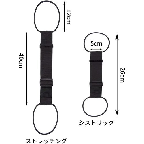 【商品仕様】本製品は荷物用ストラップで、[幅]5CM、ゴム部分:[直径]12CM、ストラップの最小収縮長26cm、最大伸縮長40CM(間で調節可能)、[ゴム部分を含む全長]50-64CMです。
