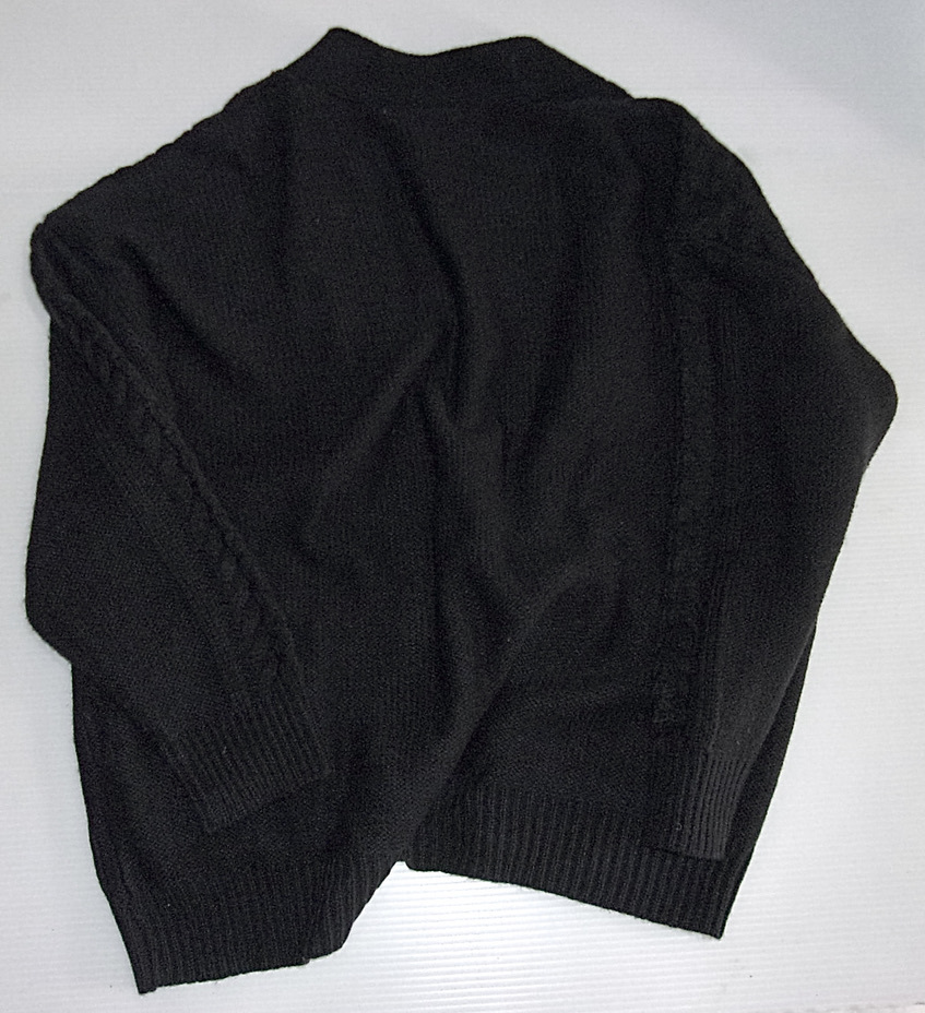 お色は、布タグにダークネイビーと表示ありますが.出品者が見ますとほとんどブラック(黒色)という印象です。少なくともはっきりとした紺色ではなく、黒に近いニュアンスの色合いです。