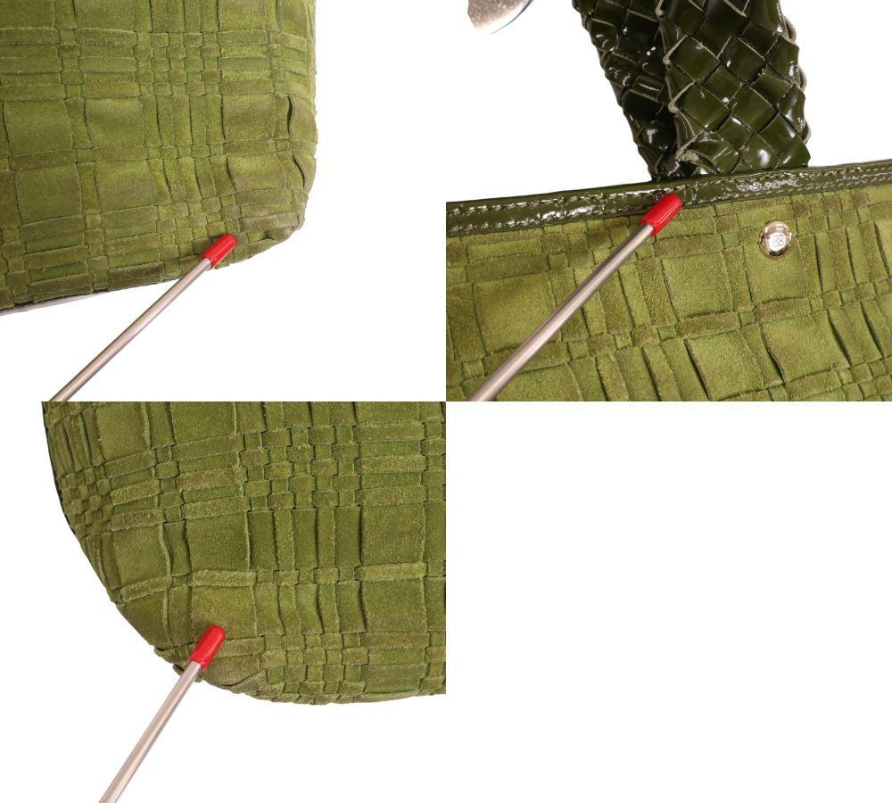 本体:グリーン スエードレザー持ち手:エナメルレザー