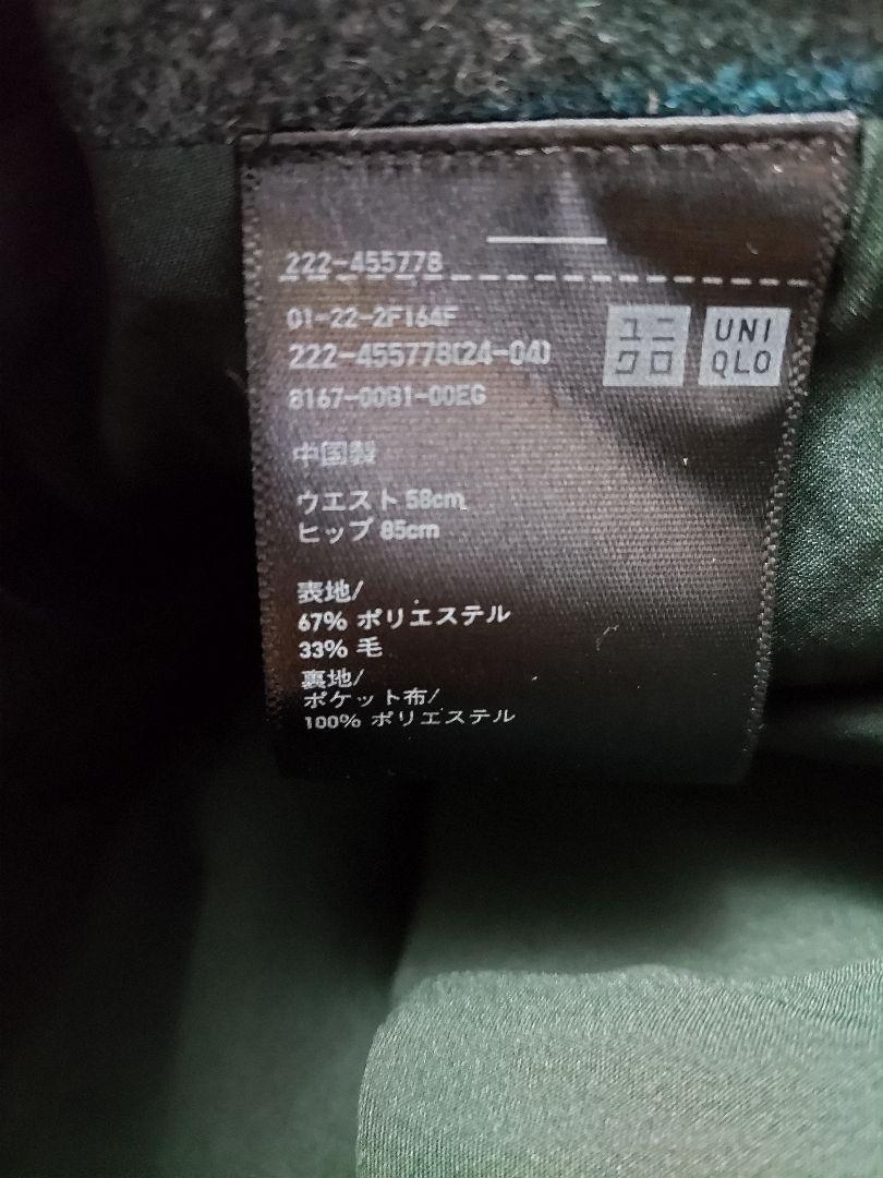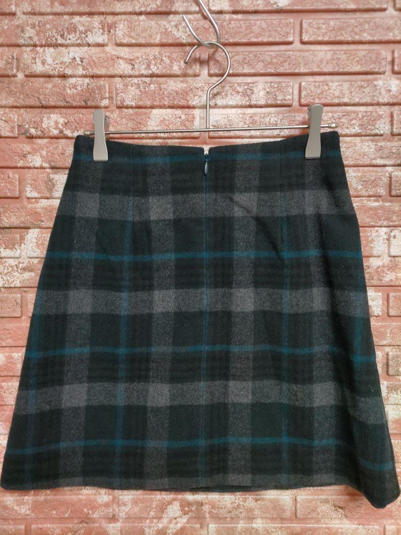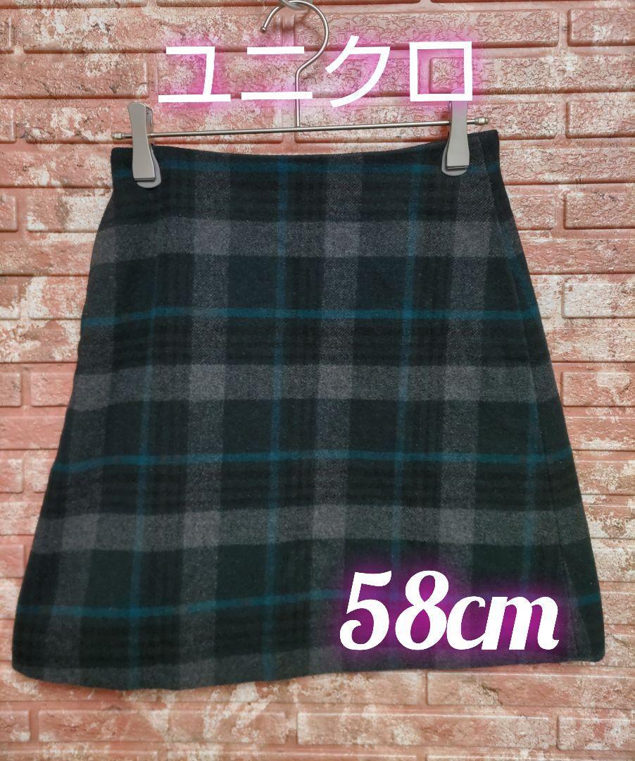 ユニクロ ウールブレンド チェック柄 ミニスカート ダークグリーン 58cm