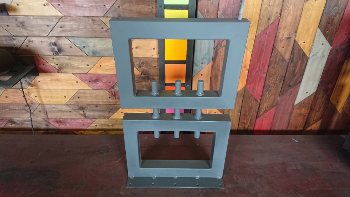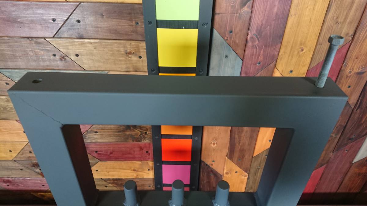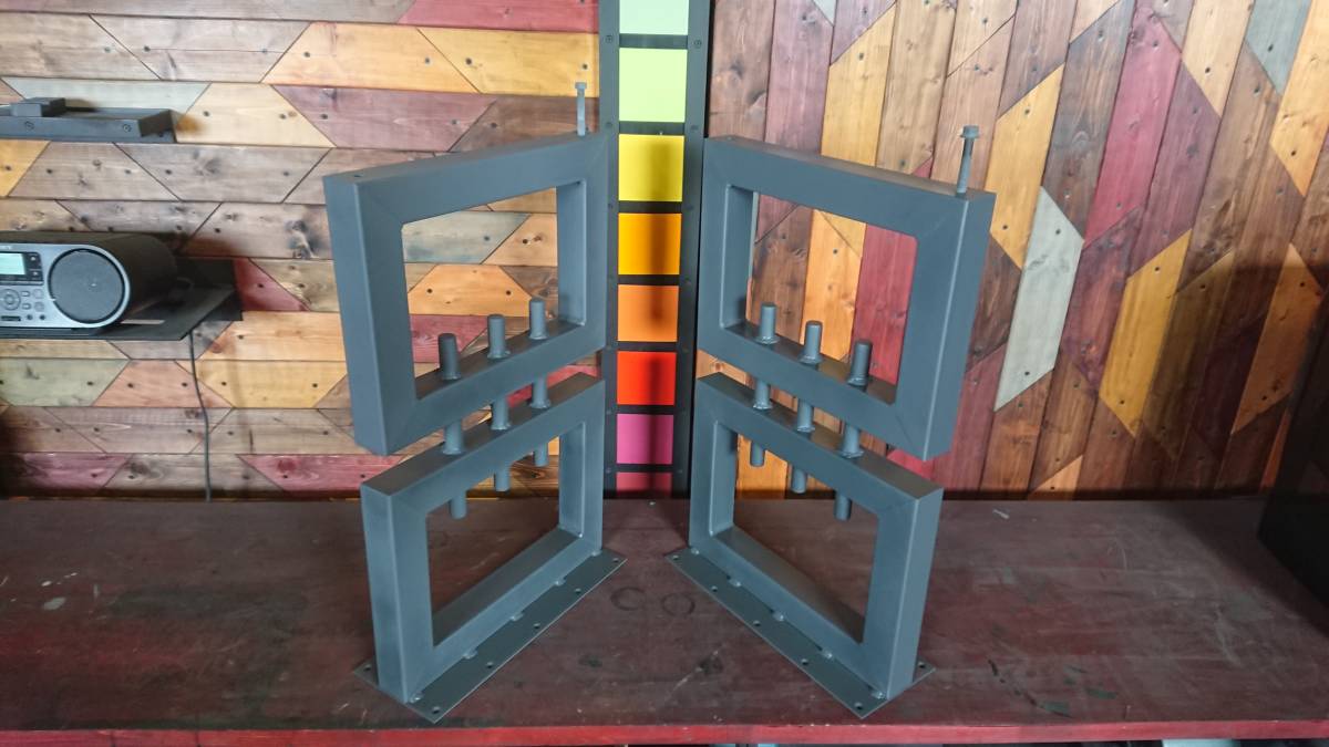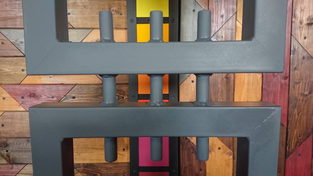 ハンドメイドの鉄脚2脚1組での出品です。50×50mmの極太フレームとφ22mmの鉄管を使用しております。