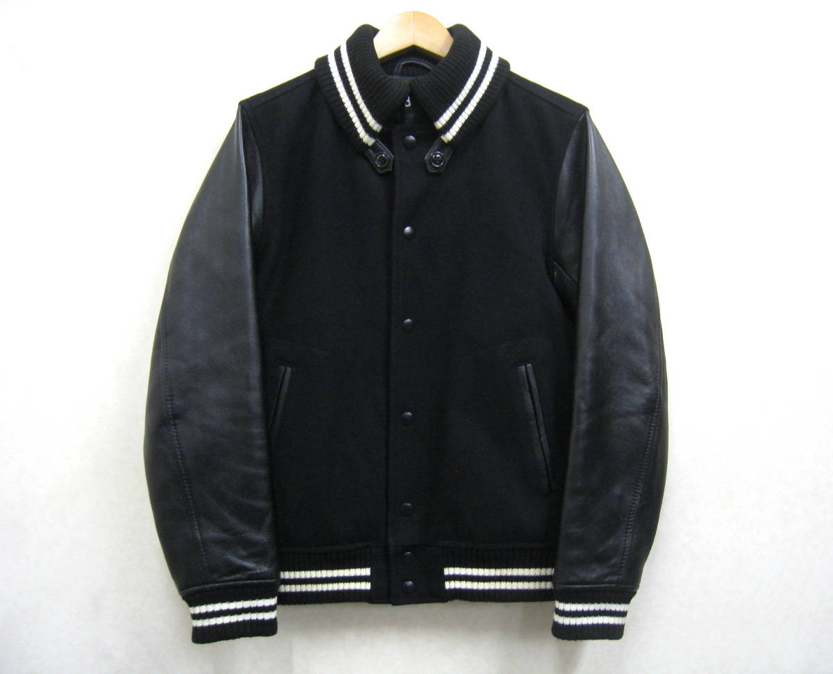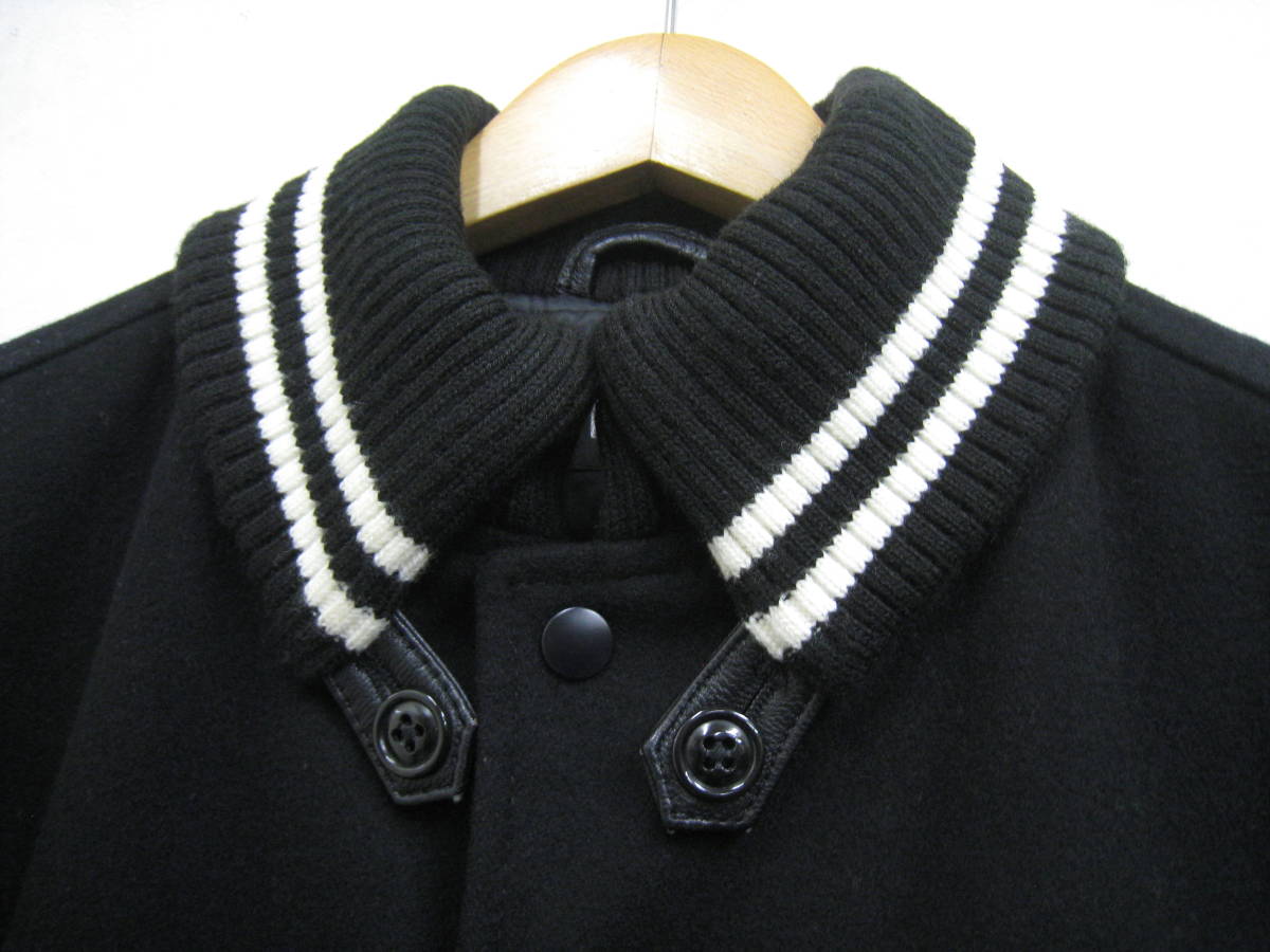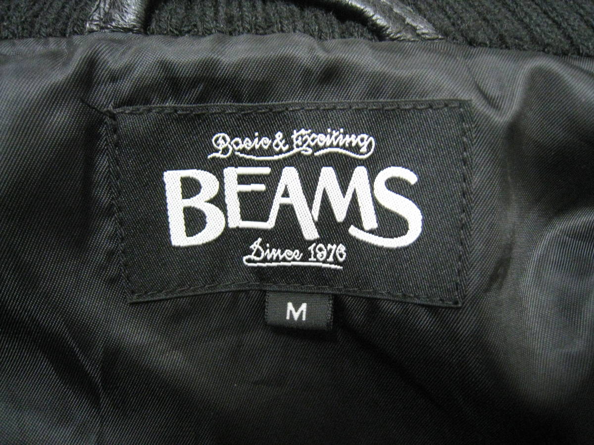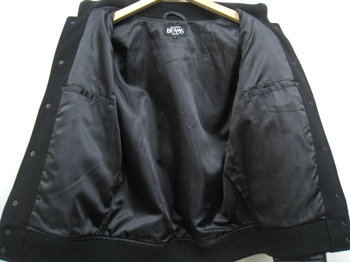★BEAMS◆ビームス ウール混 ドンキーカラー スタジアムジャンパー ラムレザー スタジャン メンズ サイズM ブラック★ | ||||