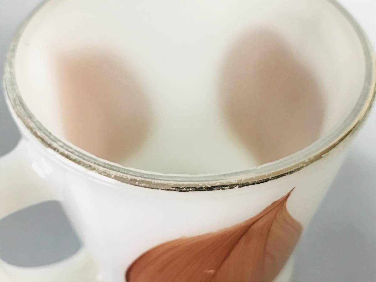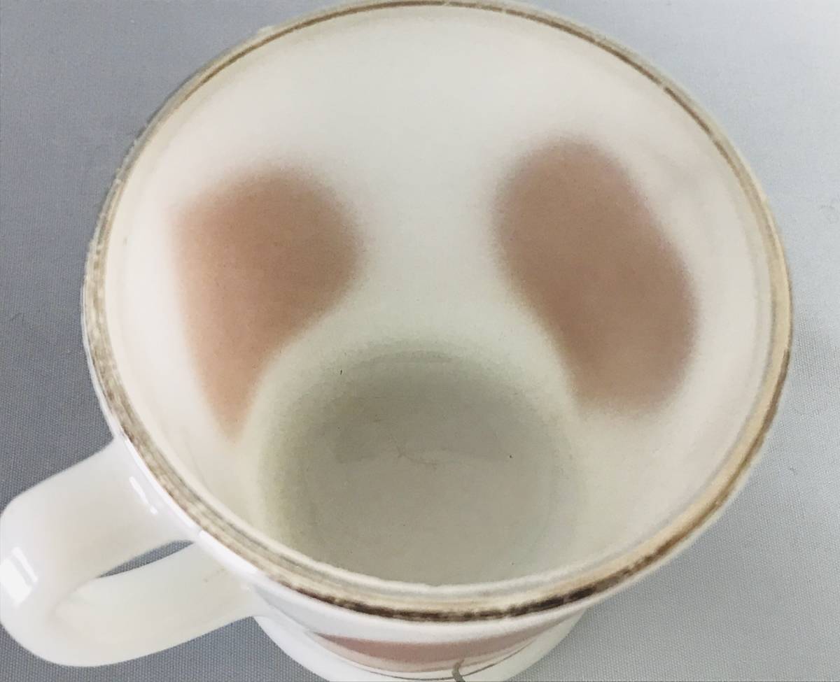 写真のようにコップ口元の塗装が剥げた箇所があります。また、図柄にも剥げがありますがご了承ください。