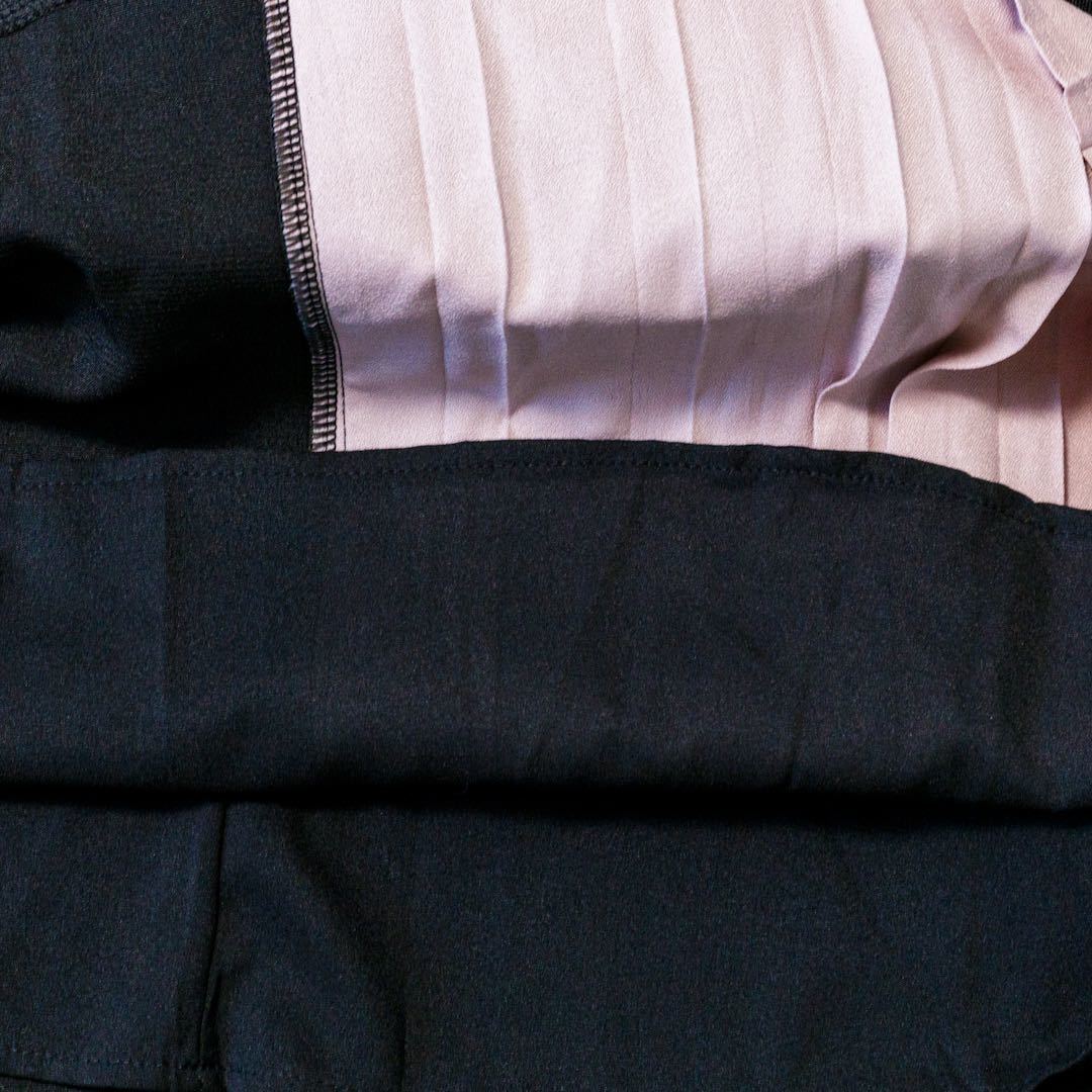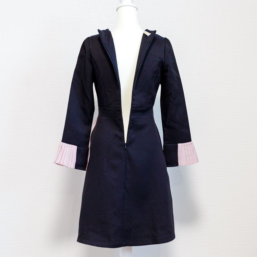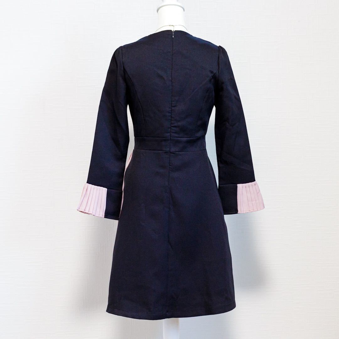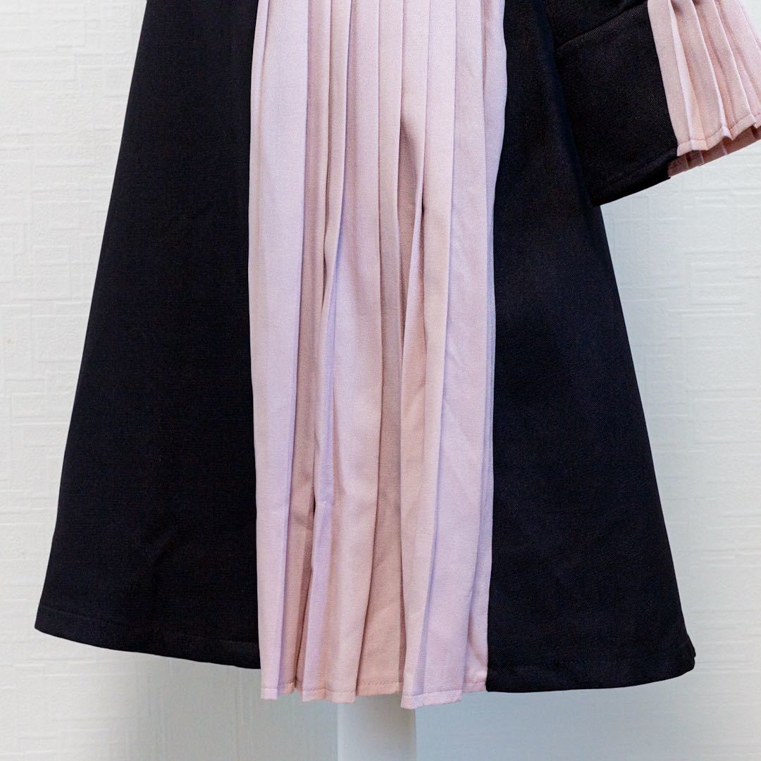 【最終値下げ☆美品☆】HonYeKongJian サイドプリーツ切替 バイカラー 長袖 ひざ丈ワンピース M