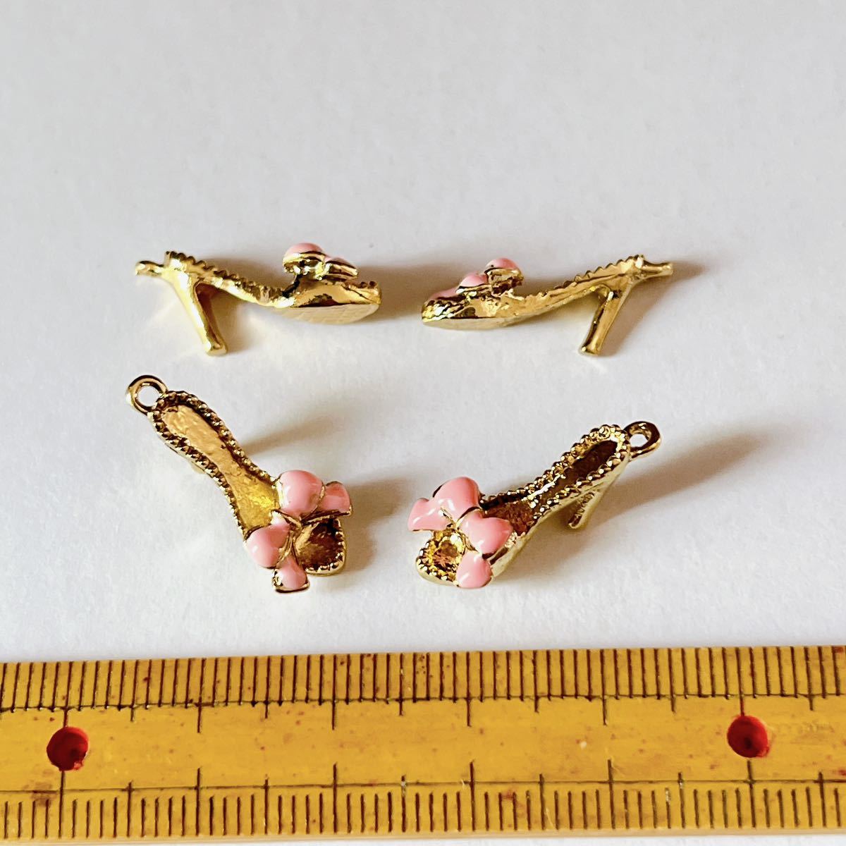 ハイヒール エナメルチャーム リボン ピンク 4個