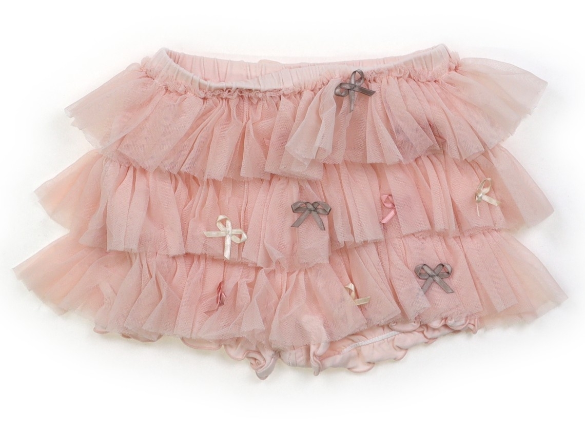 ブルマ一体型のチュールスカートです。ウエストゴムのねじれがあります。ウエストは総ゴムです。実際のサイズ表記はF。実寸はウエスト約20cm(×2平置き実寸)上端からの総丈は約21cmです。