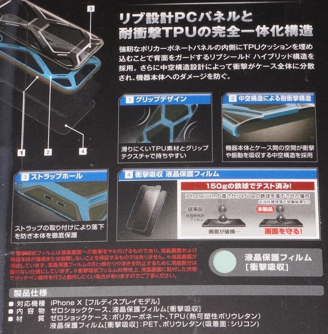 ELECOM iPhone X ZEROSHOCK シェルケース リブシールド(iPhoneXS対応) 新品・未開封です。