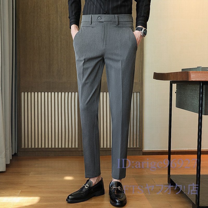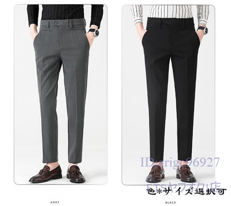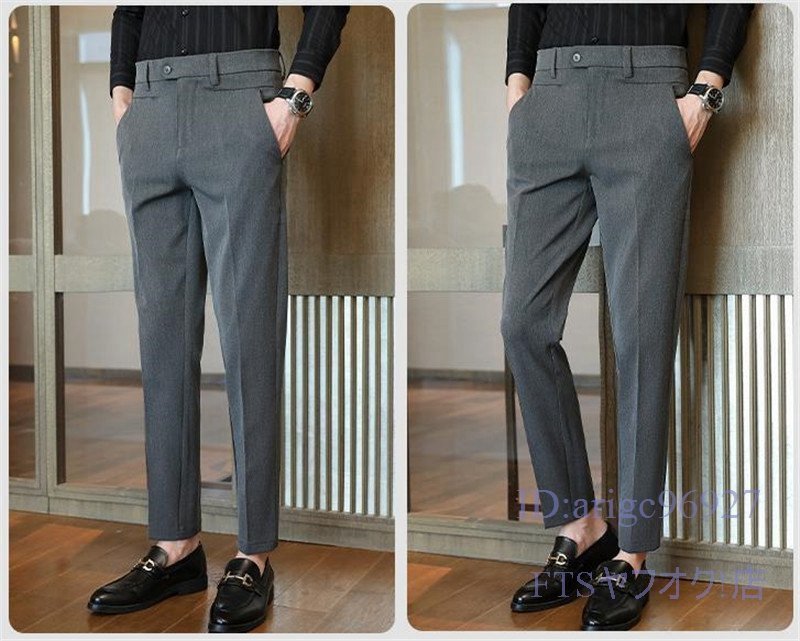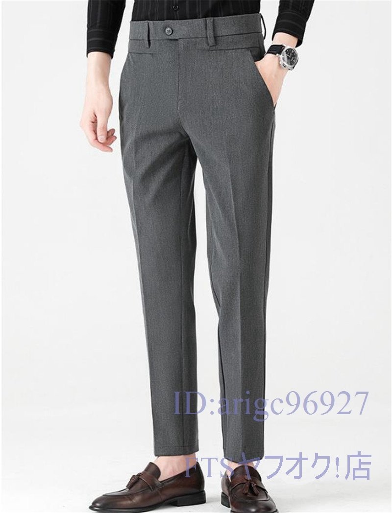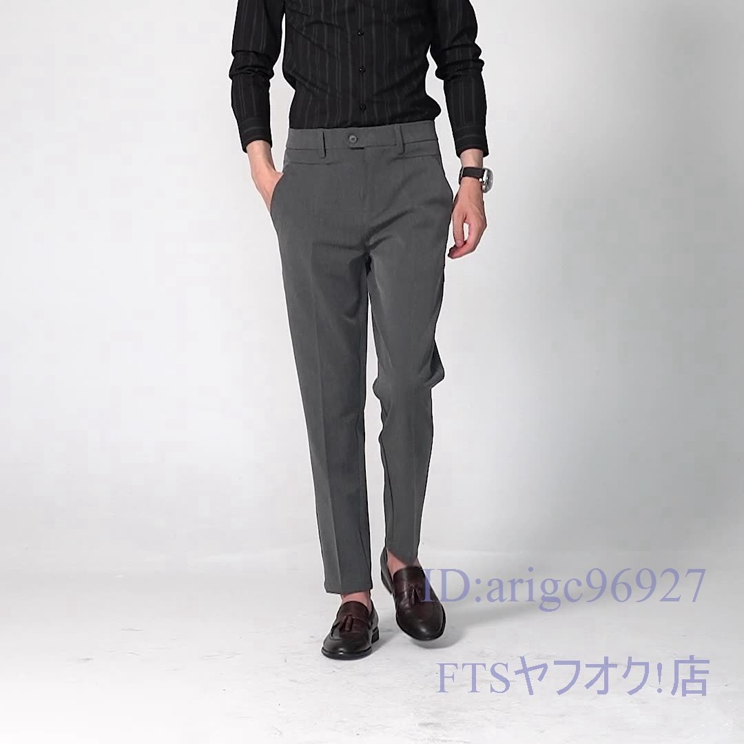 U227☆新品ビジネスパンツ ☆スラックス メンズ 春秋 ノータック スリム 無地 ボトムス チノパン クールビズ【960】グレー W32