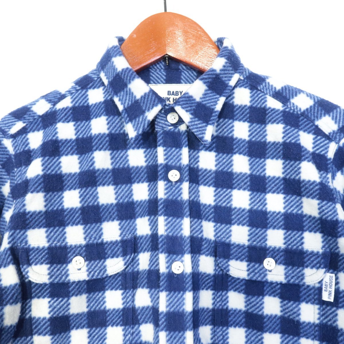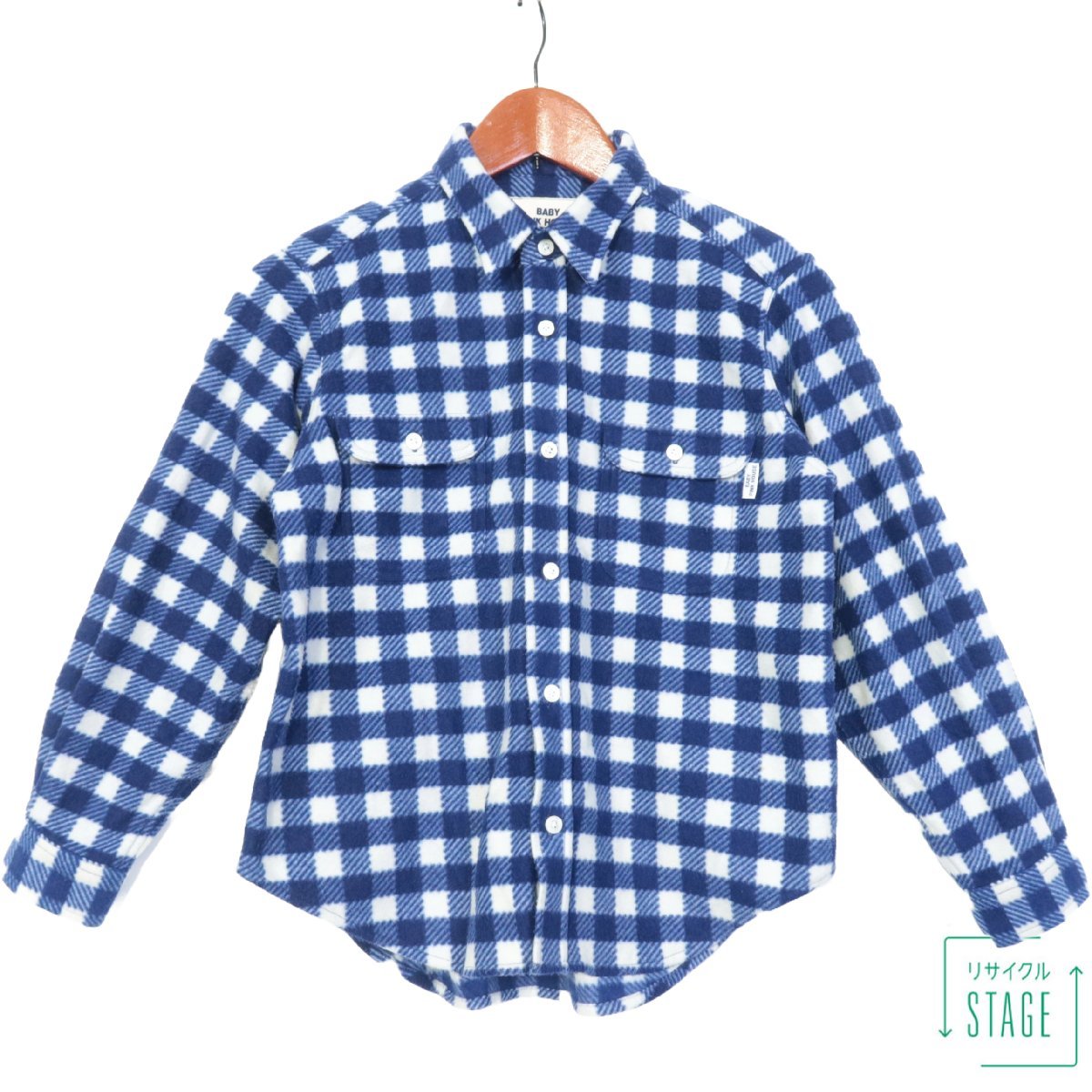 BABY PINK HOUSE★フリース素材長袖シャツ チェック キッズサイズLサイズ 120? 秋冬 暖かい ブルー系×ホワイト系 z6240