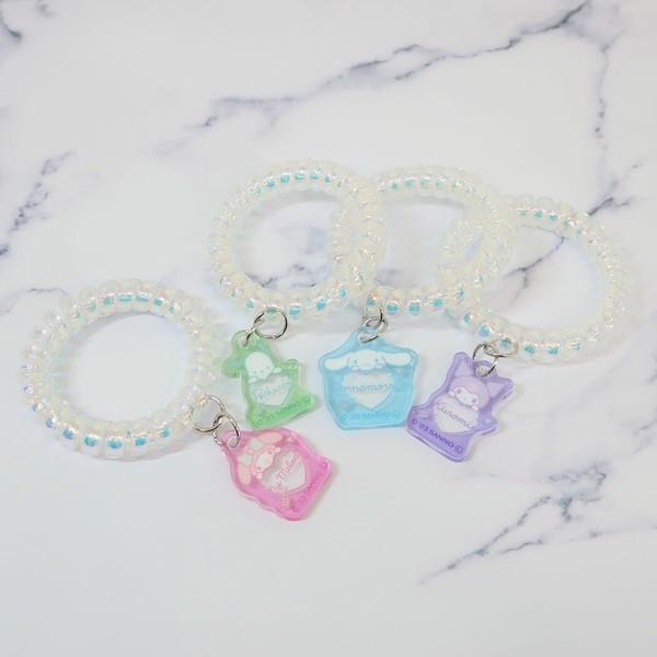 ●大人気サンリオキャラクターズこちらは髪がからみにくい【くるくるヘアゴム】髪飾りはもちろん、腕につけても楽しめる。