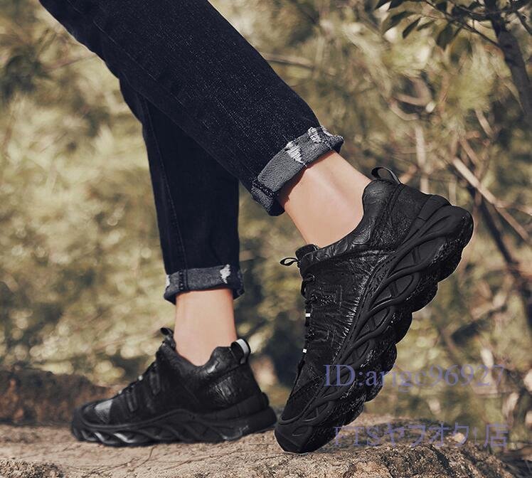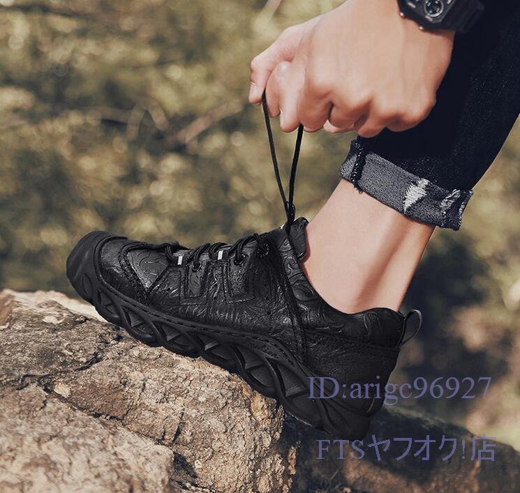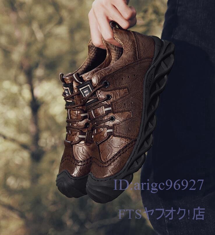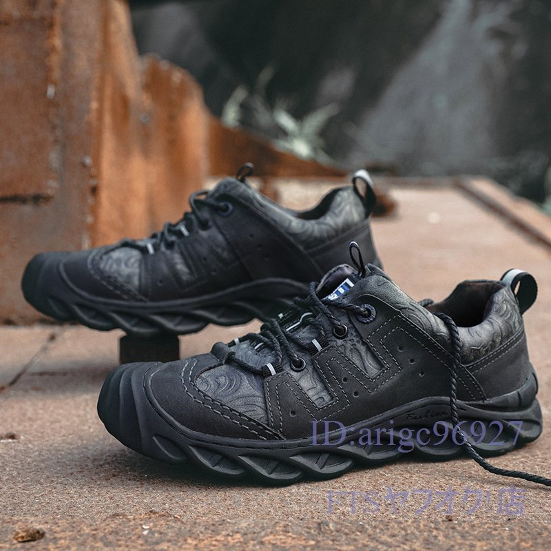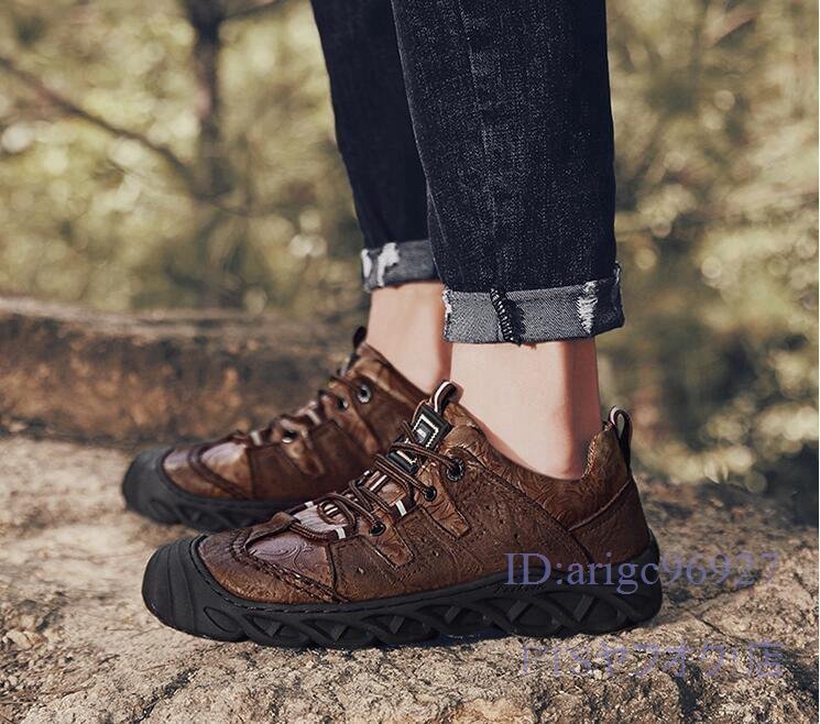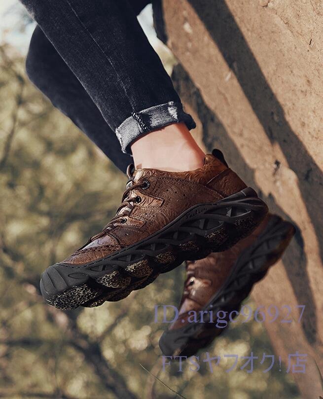 V863☆新品トレッキングシューズ 牛革メンズ ハイキングシューズ スニーカー ローカットウォーキング 登山靴 通気性 防滑24~27cm
