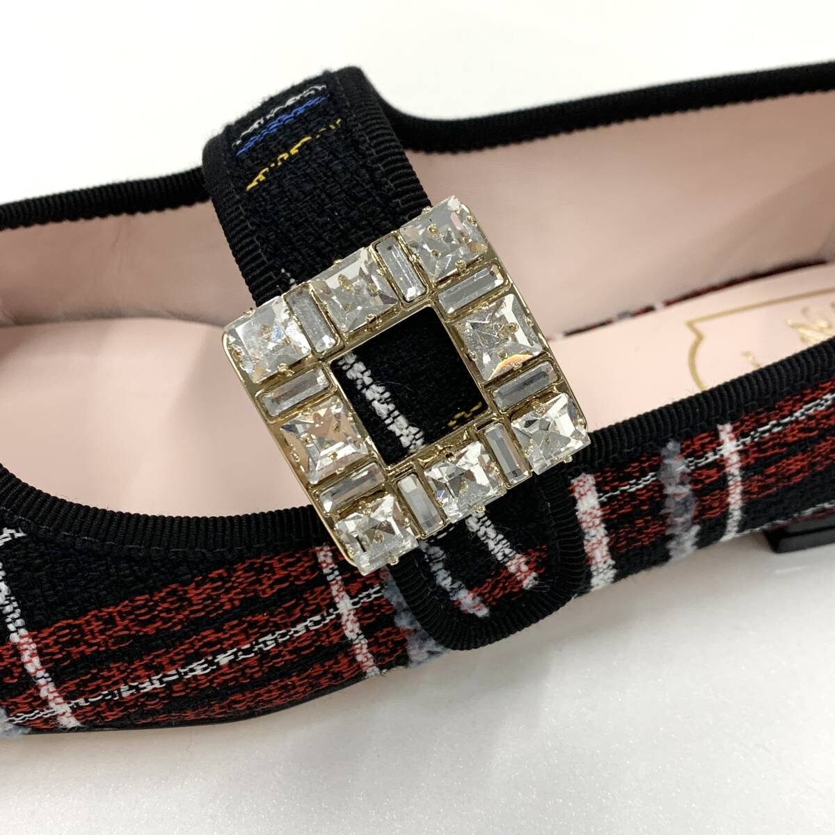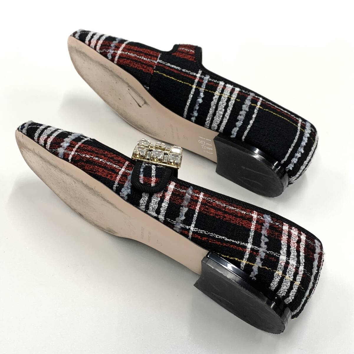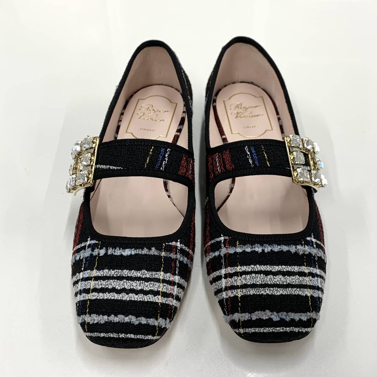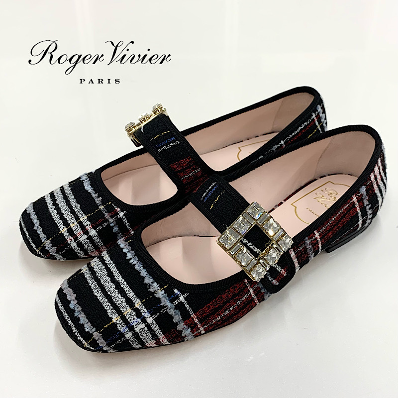 9214 ロジェヴィヴィエ トレ ヴィヴィエ ファブリック ストラスバックル チェック フラットシューズ マルチカラー