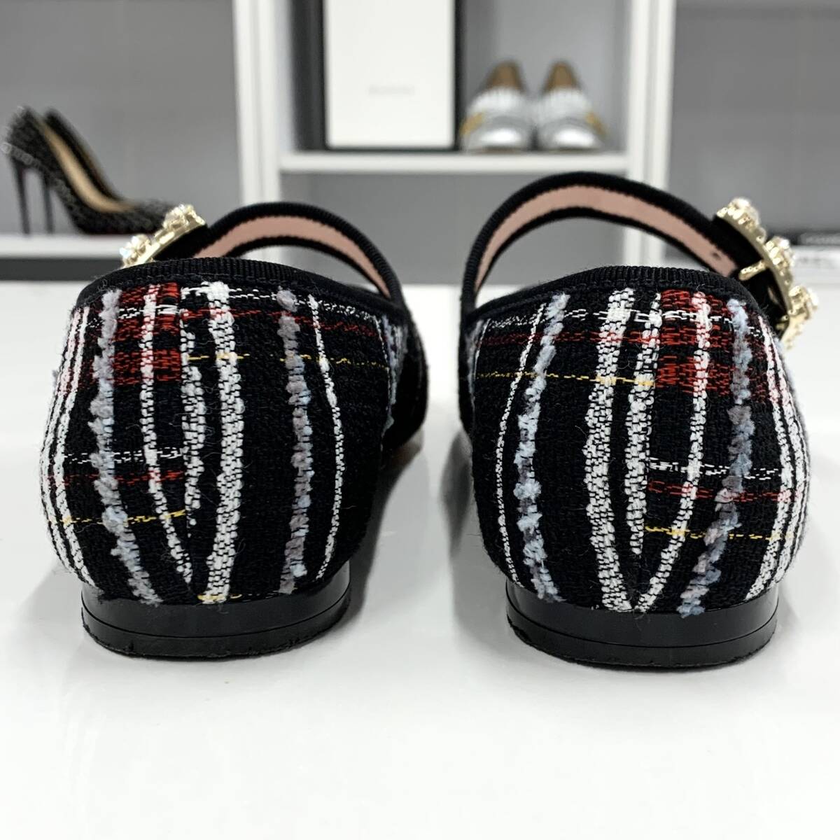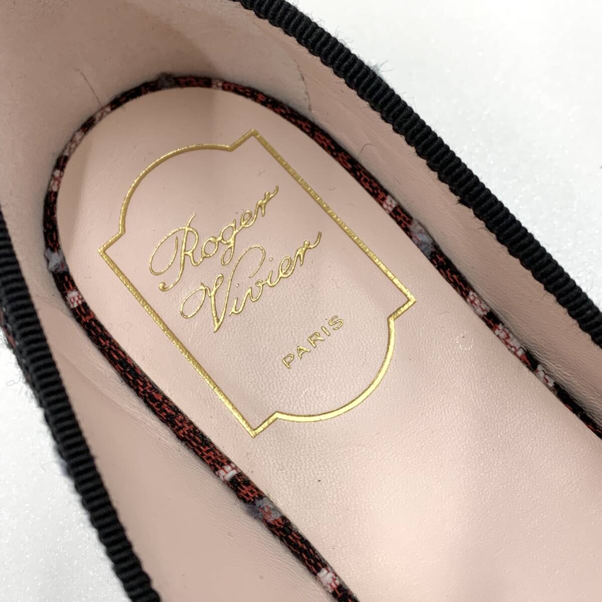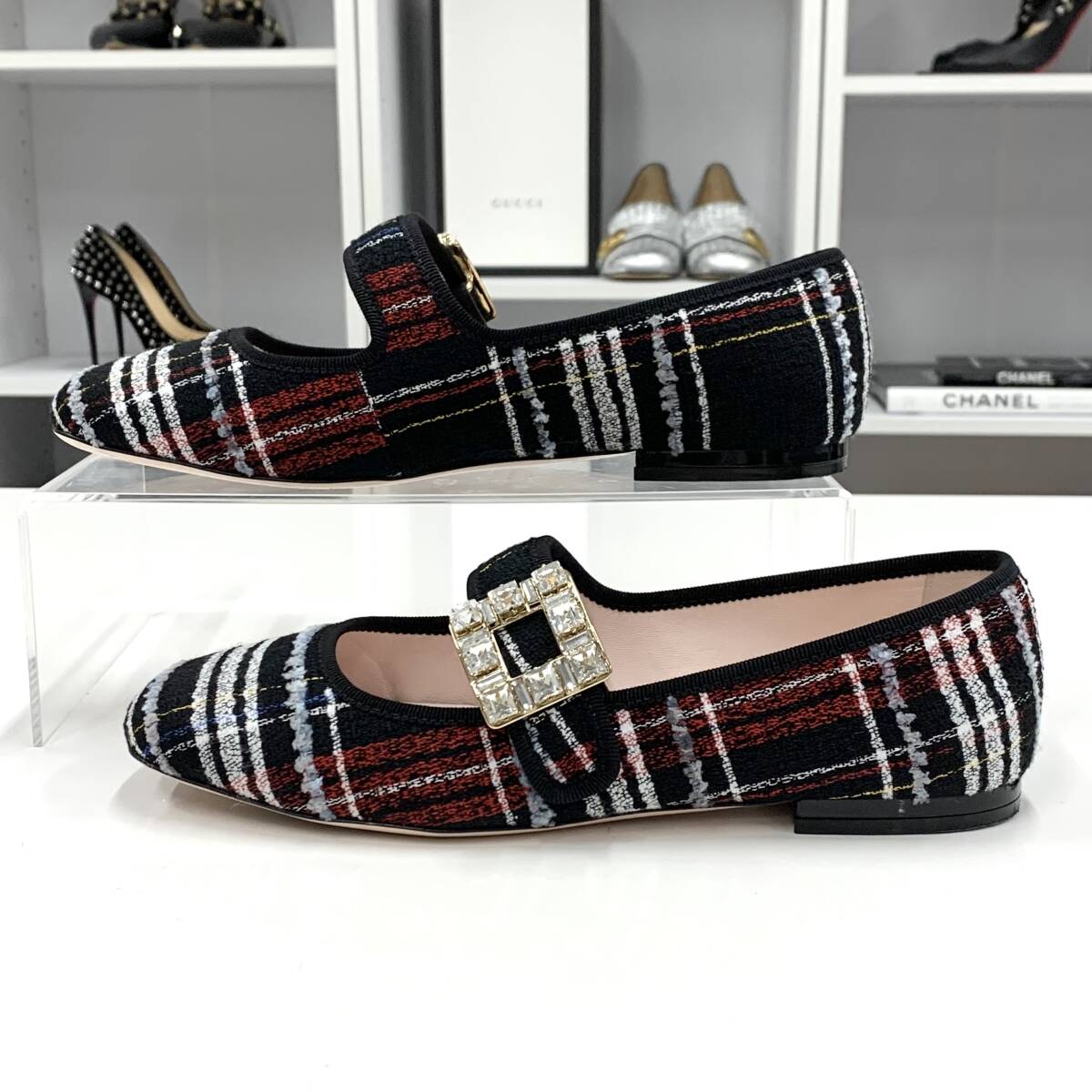 9214 ロジェヴィヴィエ トレ ヴィヴィエ ファブリック ストラスバックル チェック フラットシューズ マルチカラー