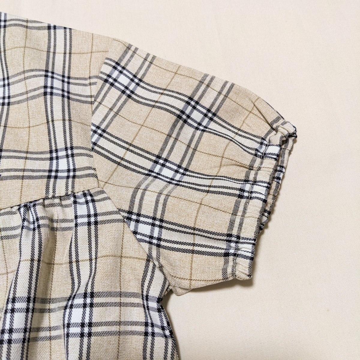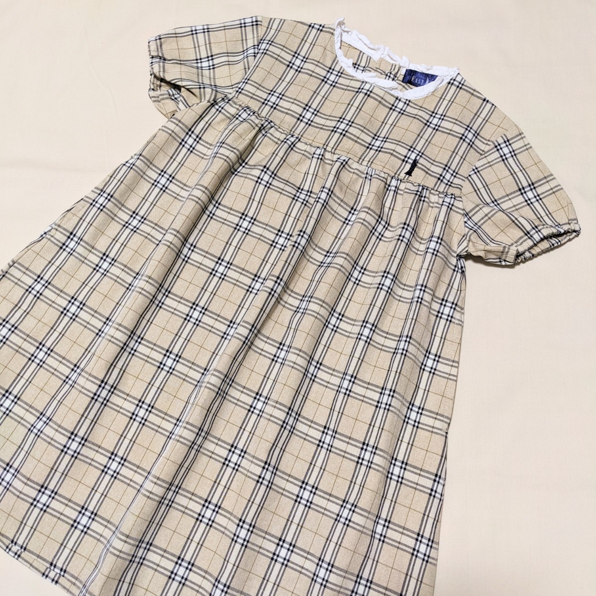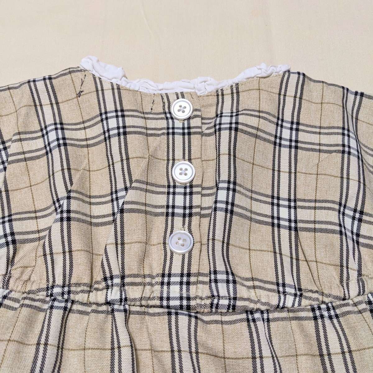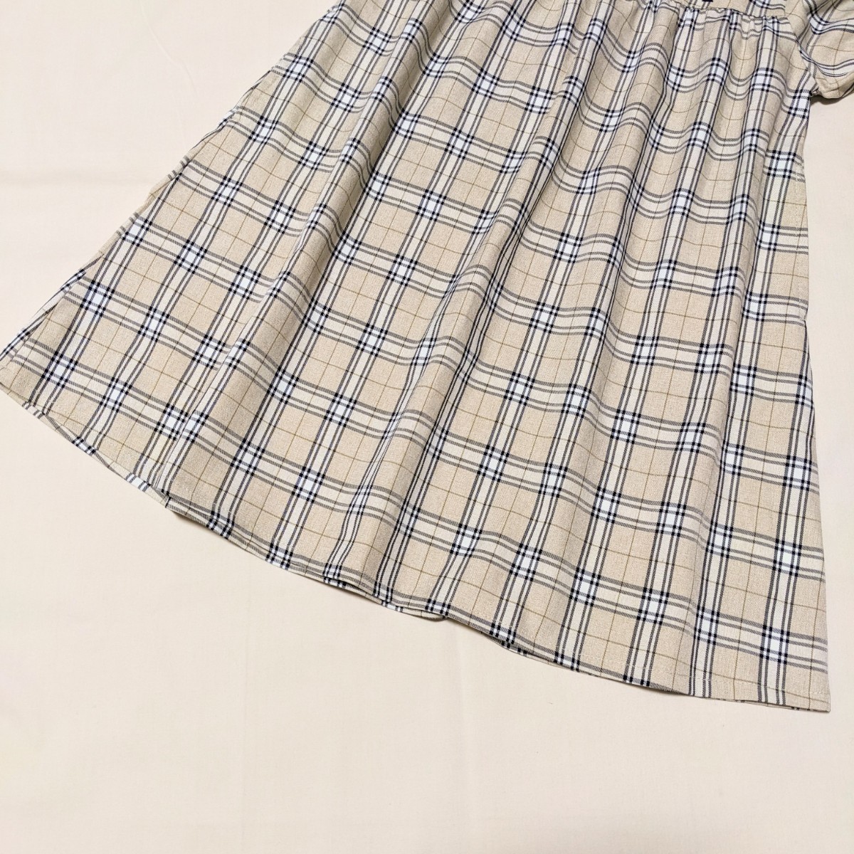 可愛らしいベージュのチェックのワンピースです。
