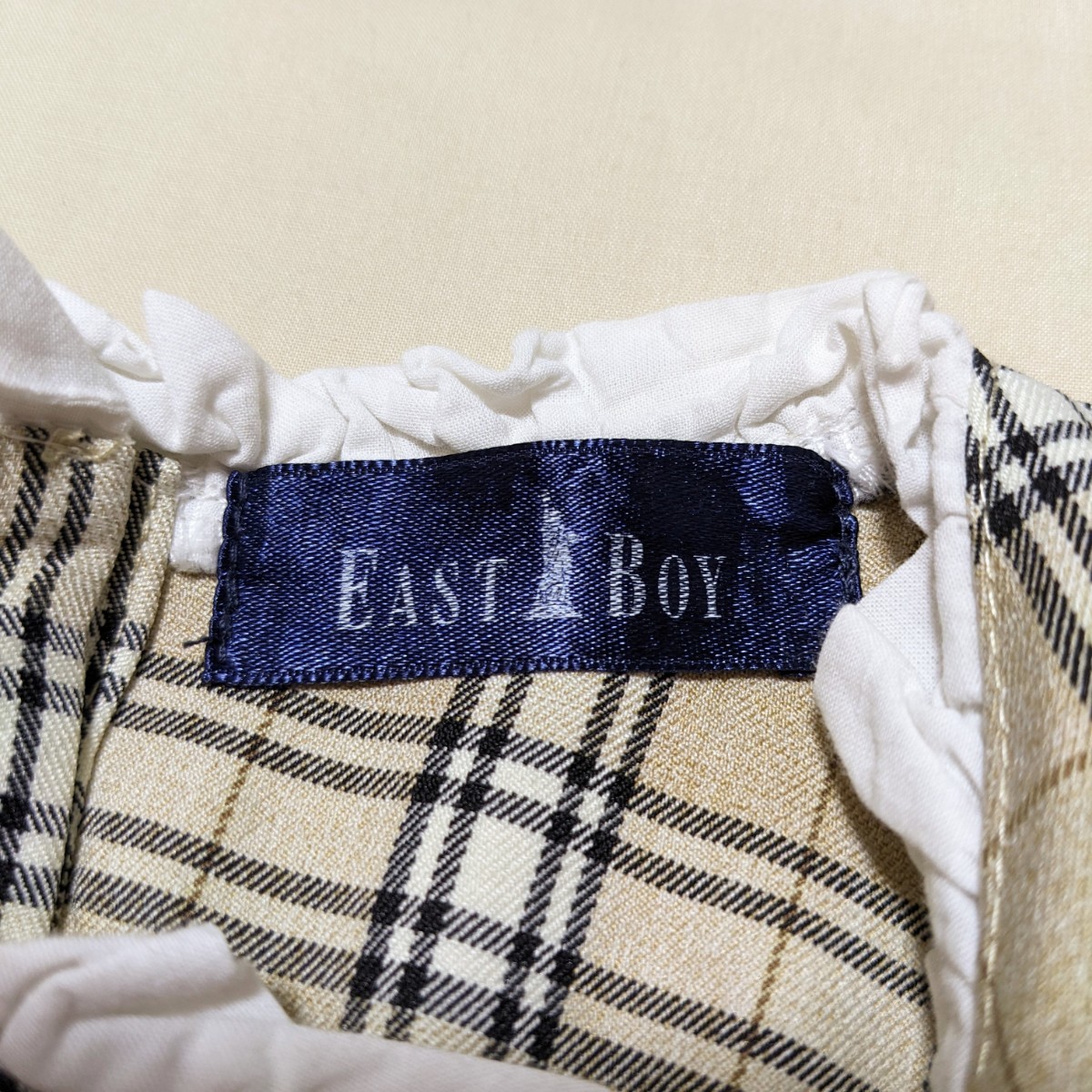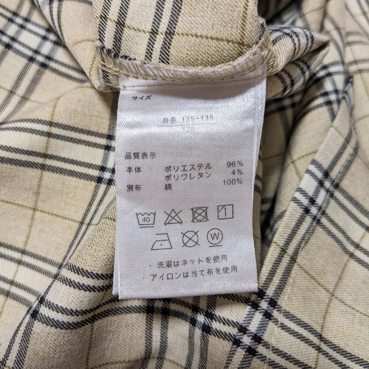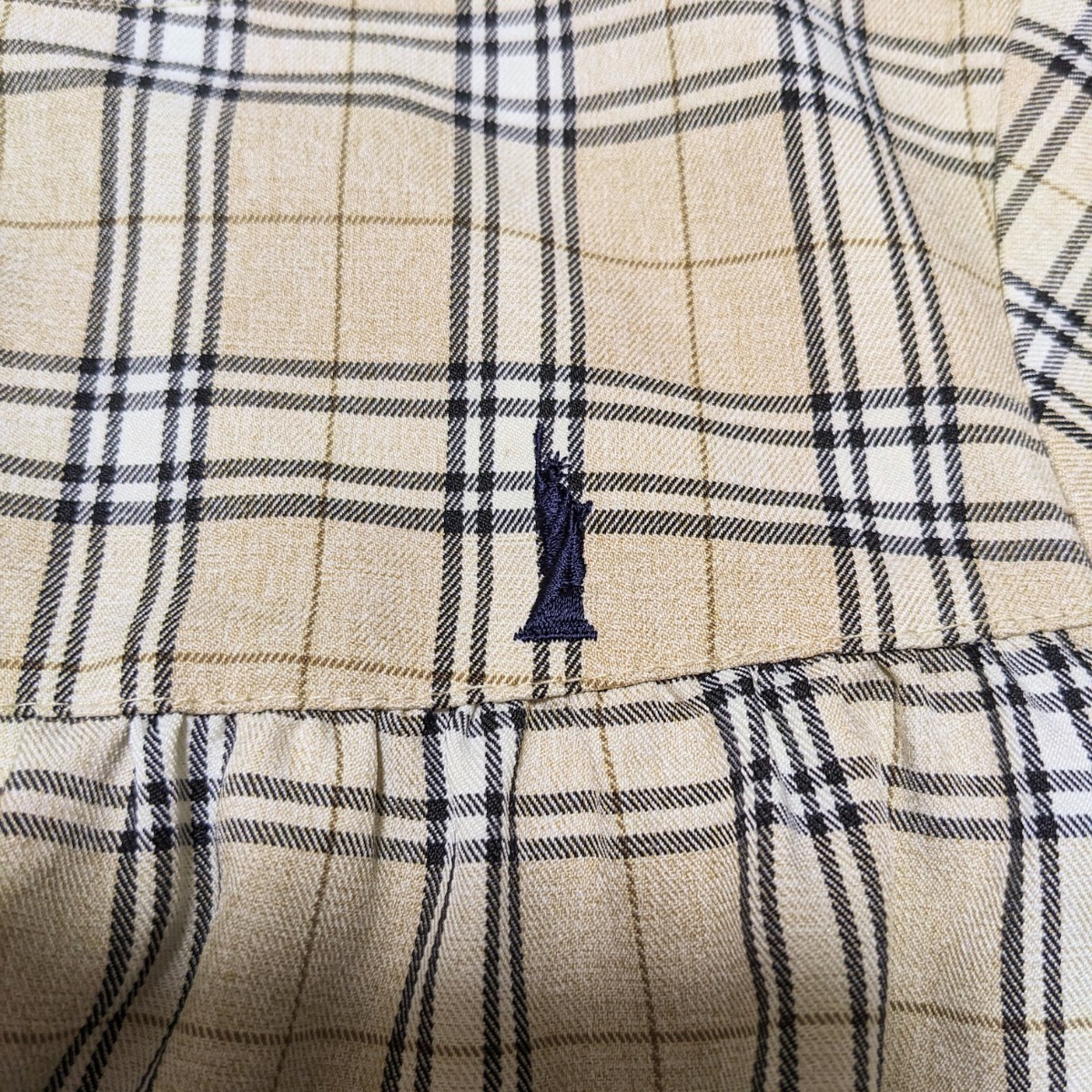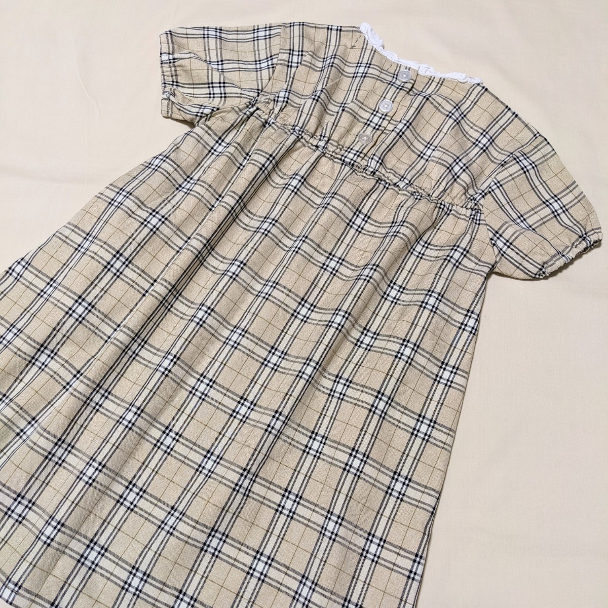 可愛らしいベージュのチェックのワンピースです。