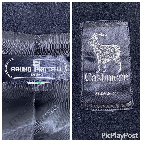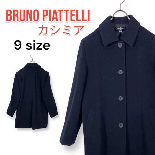 BRUND PIATTELLI レディース カシミヤ ステンカラーコート サイズ9 黒 ブラック レナウンルック