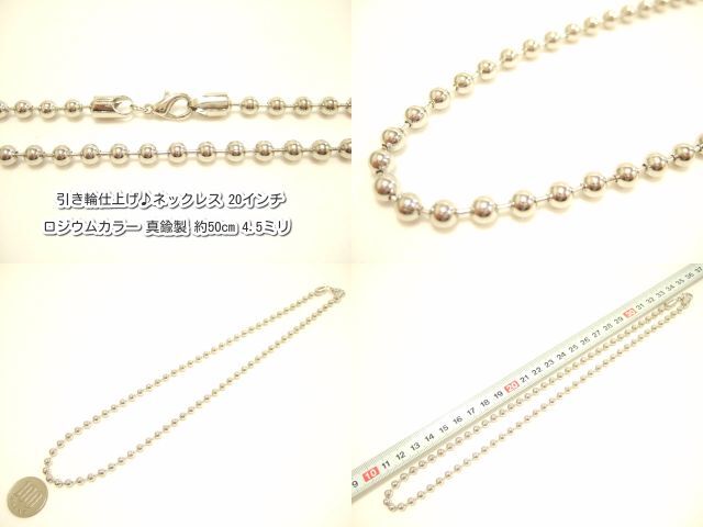 | 商品名 | 横浜最新 魅惑のボールチェーン♪ネックレス ロジウムカラー 真鍮製 50センチ 巾4.5ミリ 10本セット メンズレディース |