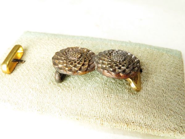 ●和装小物 大正~昭和 オリジナル 銅製 菊 彫金 帯留になります。古い物ですが極力状態の良い作品を出品しておりますので是非ご覧ください。