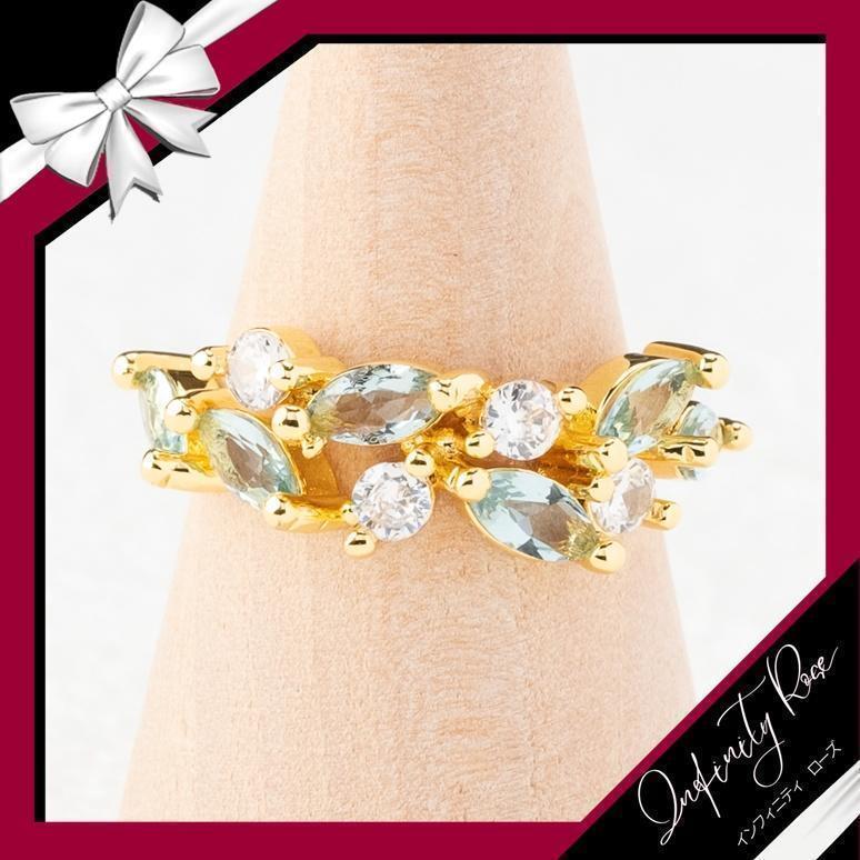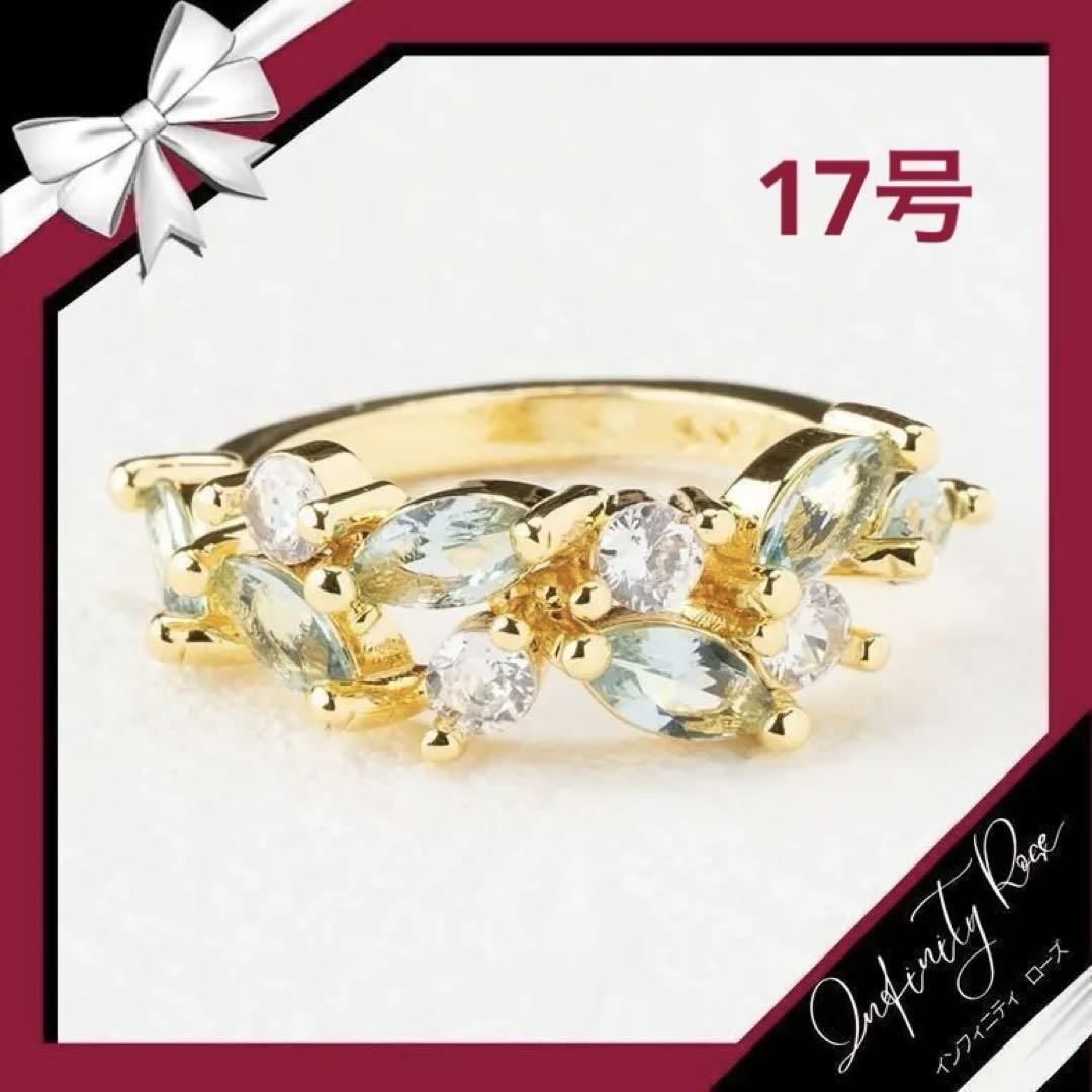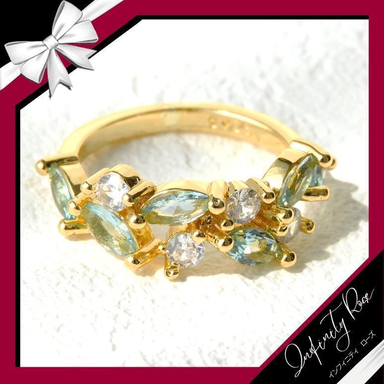 (R034G)17号 ゴールド×ブルークリスタル爽やかリング 高価爪留め仕様指輪