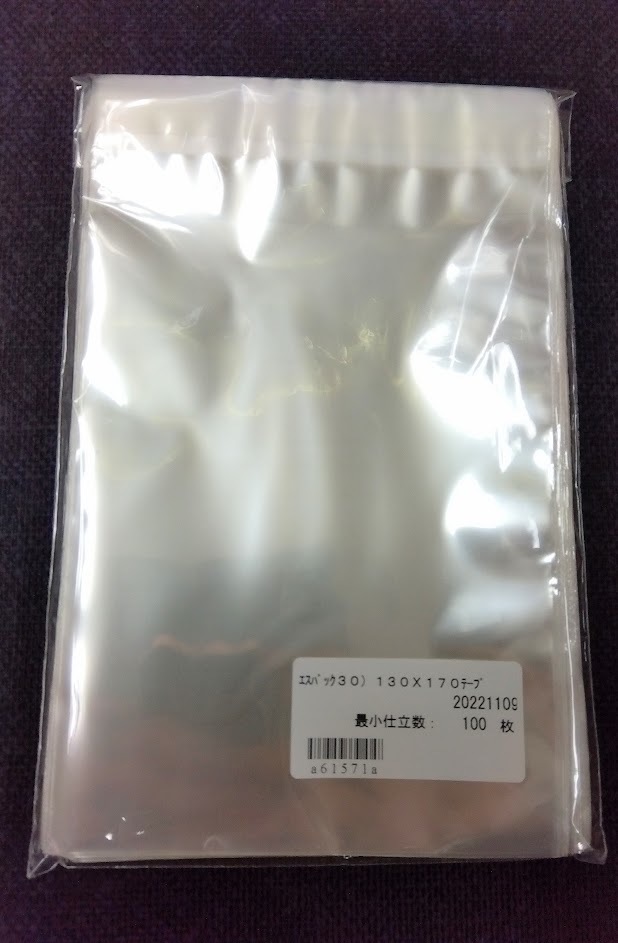 ♯30 OPP袋エスパック(130×170mm) テープ付き100枚。