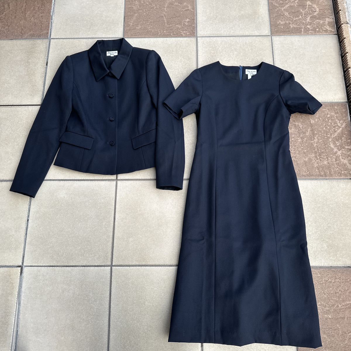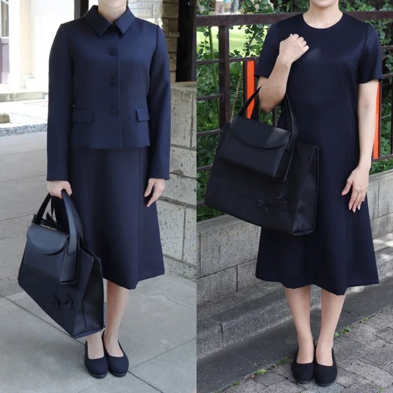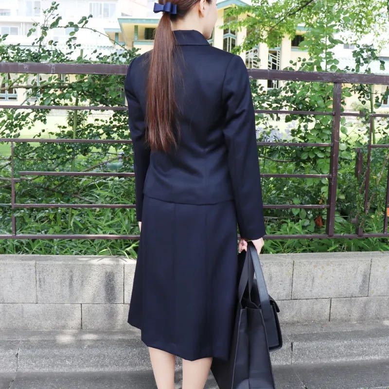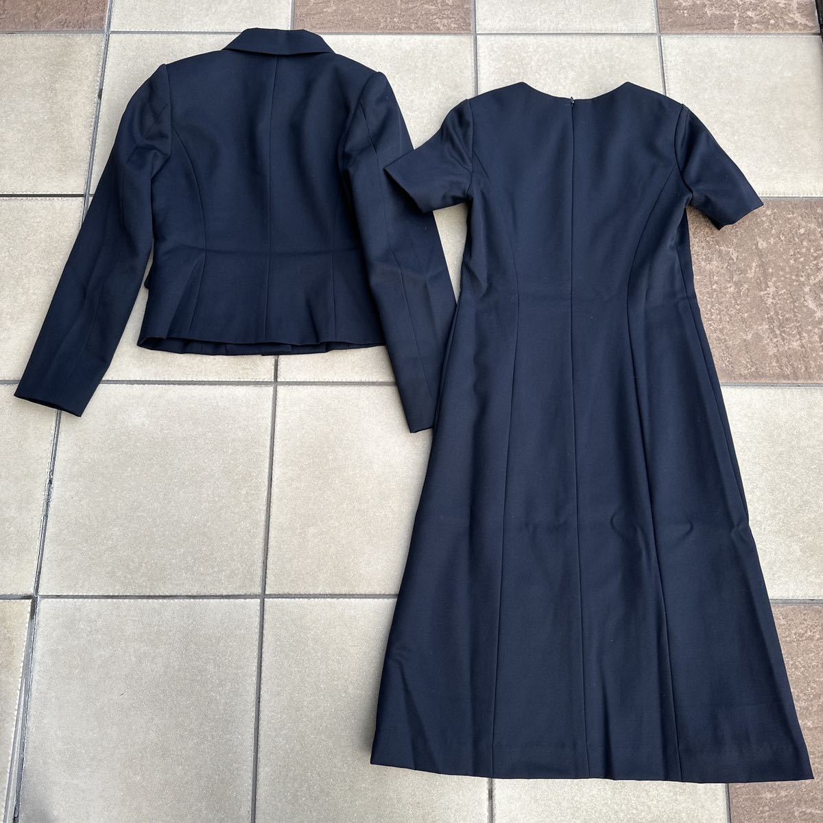 3シーズン対応の濃紺のスーツ(ジャケットとワンピース)です。