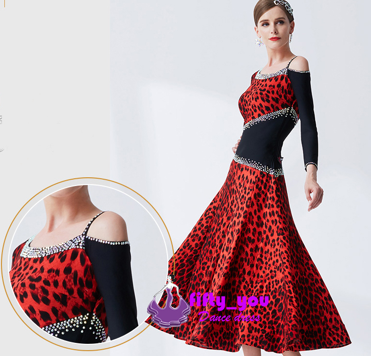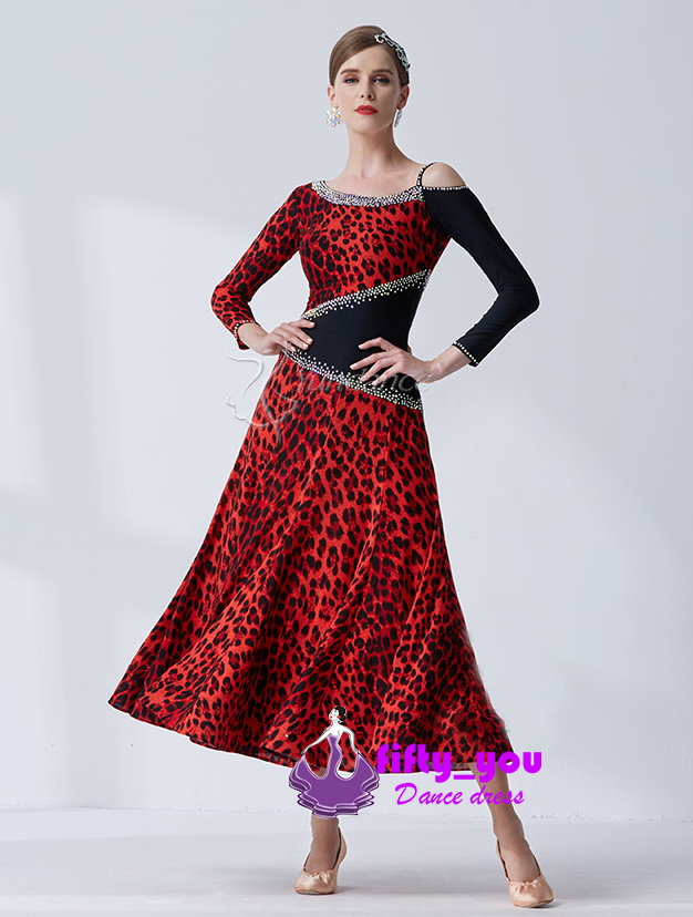 新品fifty_you レディース社交ダンス衣装 魅力セミオーダー 競技練習用ダンスドレス  エレガント新品  ヒョウ柄 ミックス色