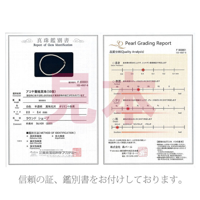 森パールオリジナル基準の鑑別書をお付けいたします。