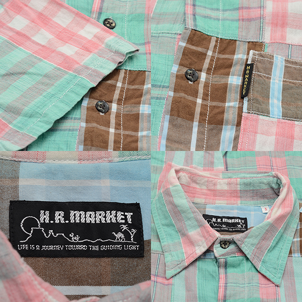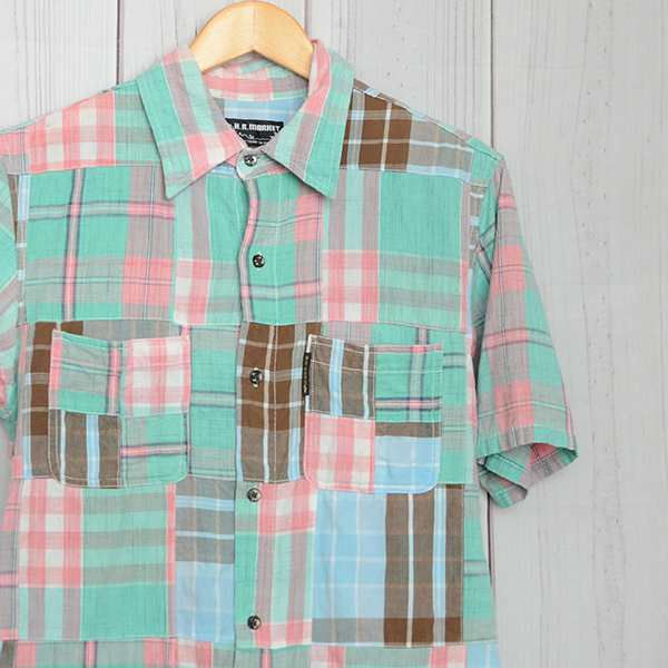 AA5354 ハリウッドランチマーケット 半袖シャツ 3 / L 肩幅42 セイリン パッチワークシャツ メール便可 xq