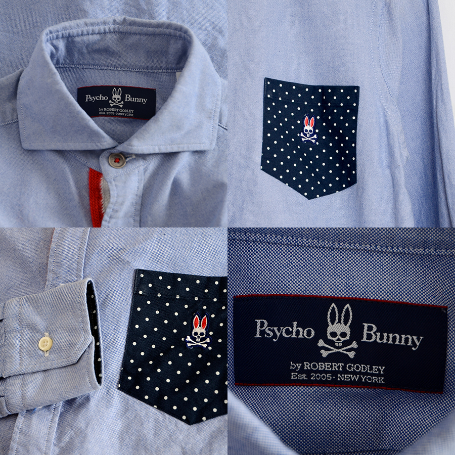 AS238 サイコバニー Psycho Bunny 長袖シャツ S 肩39 メール便発送可 xq