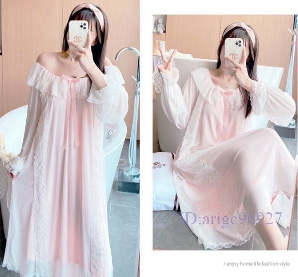 B255★レディース S.M.L.XLサイズ 綿 ピンク系 宮殿 プリンセス ネグリジェ ルームウエア 滑らか 肌さわり 心地良い リラックス
