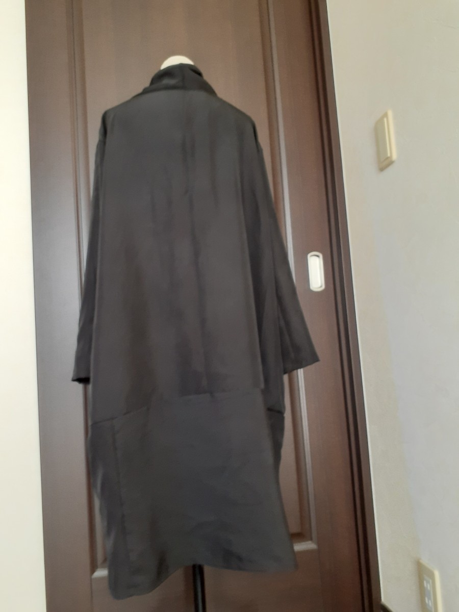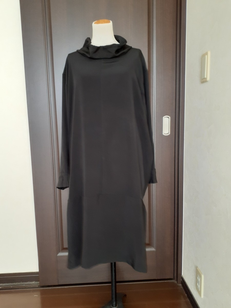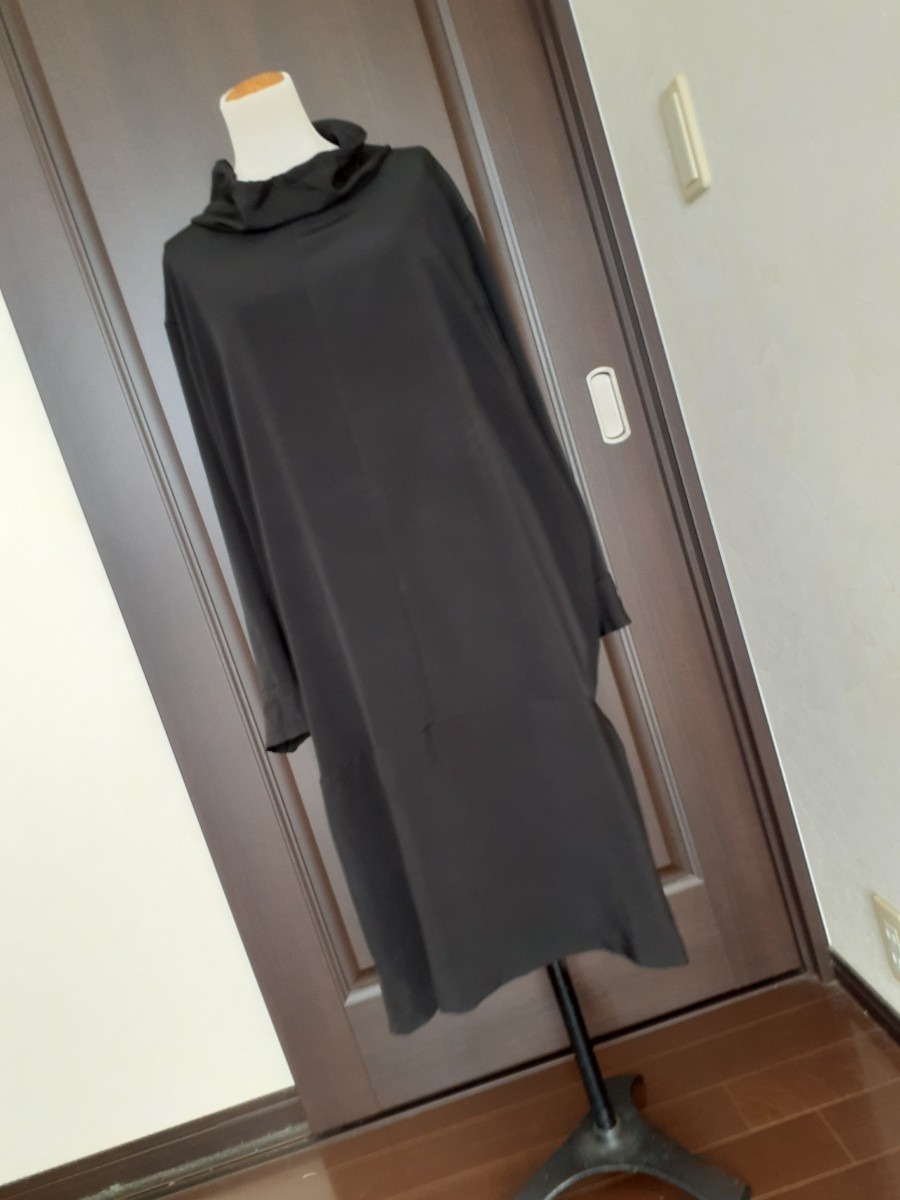 ~4L程度の方までご着用頂けます、大きいサイズのブラックフォーマルを、黒の着物を解いて、着物リメイクワンピースとして、ハンドメイド致しました。実寸は脇下身幅63程度、総丈103程度、長袖になります。襟に手芸用の特殊アルミを入れておりますので、自由に形が描けます。恐縮ですが、裏地はついておりませんが、写真9のような、黒系インナーワンピースを、別オークションにて出品中です。共に、ご落札頂きましたら、同送致します。又、写真10は別売り黒のコートを重ねた参考写真になります。別売りですが、2点ご購入頂けき、共にご着用頂ければアンサンブルスーツになります。