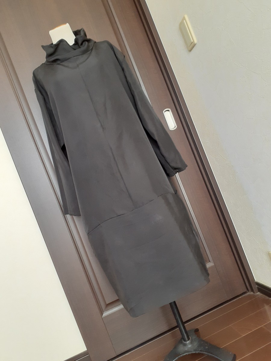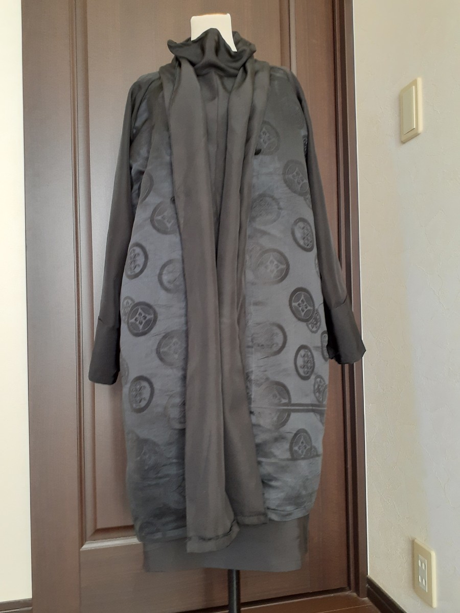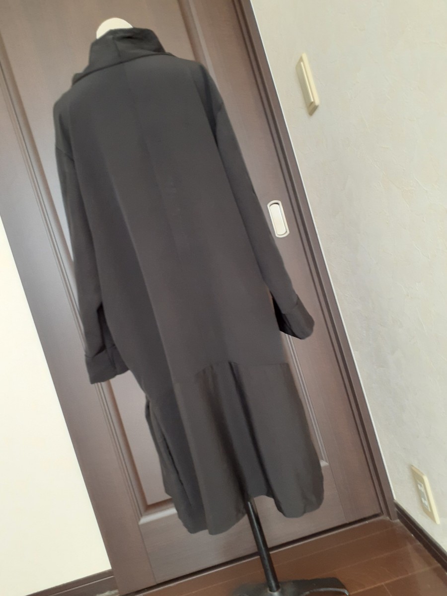 ~4L程度の方までご着用頂けます、大きいサイズのブラックフォーマルを、黒の着物を解いて、着物リメイクワンピースとして、ハンドメイド致しました。実寸は脇下身幅63程度、総丈103程度、長袖になります。襟に手芸用の特殊アルミを入れておりますので、自由に形が描けます。恐縮ですが、裏地はついておりませんが、写真9のような、黒系インナーワンピースを、別オークションにて出品中です。共に、ご落札頂きましたら、同送致します。又、写真10は別売り黒のコートを重ねた参考写真になります。別売りですが、2点ご購入頂けき、共にご着用頂ければアンサンブルスーツになります。