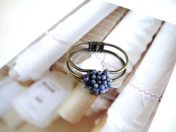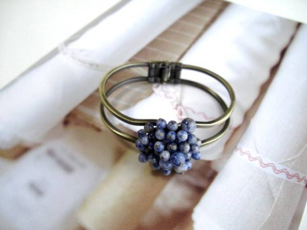 春の予感・・シリーズです♪菫色の花束・・可憐なデニムラピスのバングルです♪藍色のラピスは3ミリ、4ミリ、6ミリの丸玉です♪シャワー台に繋いでいます♪トップは2.5センチです♪バングルはフリーサイズです♪お揃いのネックレスやリングも出品しています♪シンプルで飽きのこないいつまでも着けられるデザインを考えて作りました!ハンドメイドをご理解頂いてノークレーム、ノーリターンでお願いします