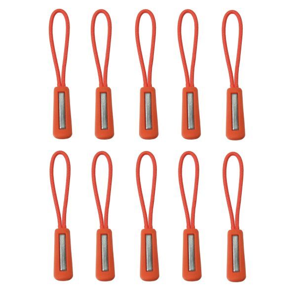ジッパープル 反射材付き ファスナー チャック 取り付け簡単 つかみやすい ノンスリップ ジッパータブ プルコード 10本セット (オレンジ)