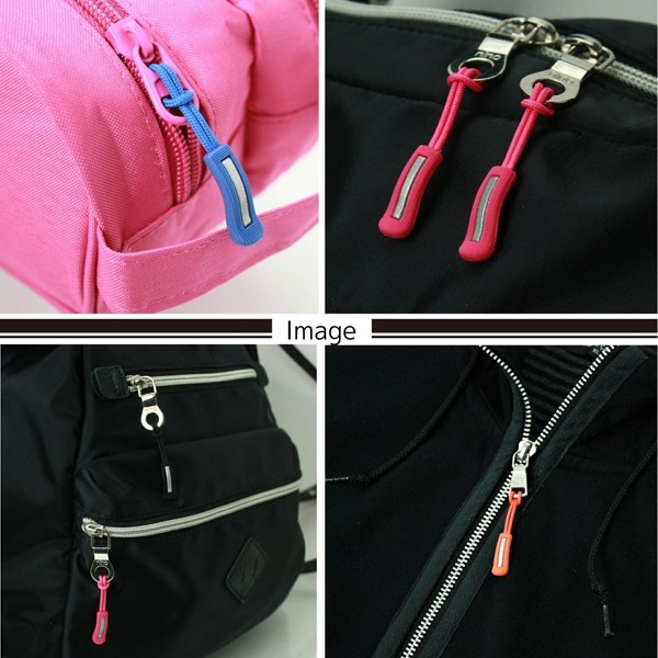・ジッパー端のリングに結ぶだけの取り付け簡単で、ほとんどのファスナーに付けられます。壊れてしまったタブの修理やつかみにくいタブに取り付ければ、使い勝手のよいチャックにリニューアルできます。