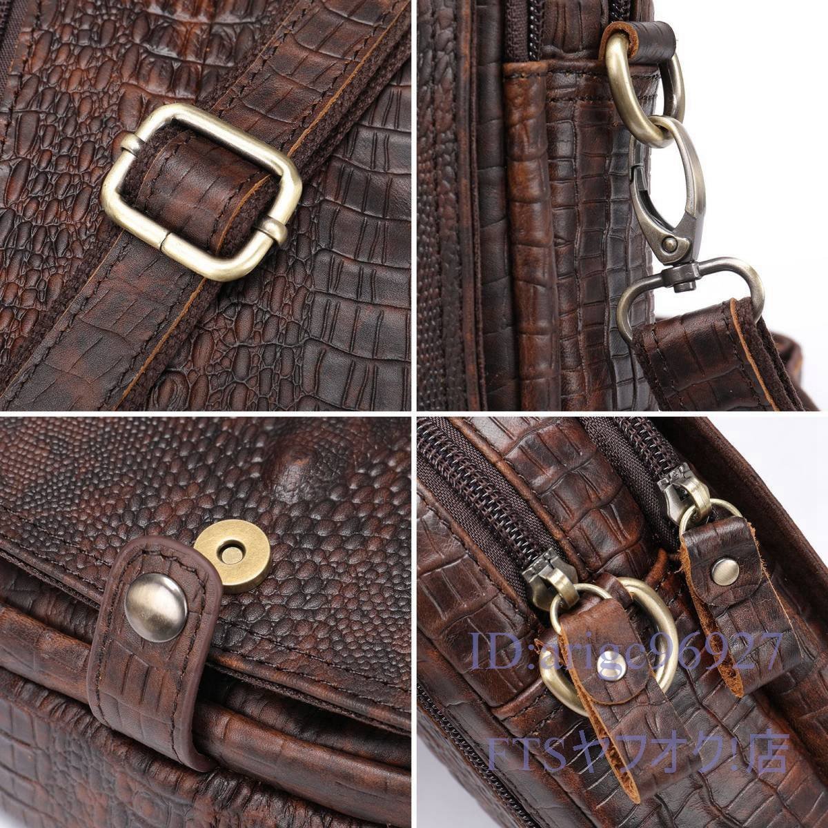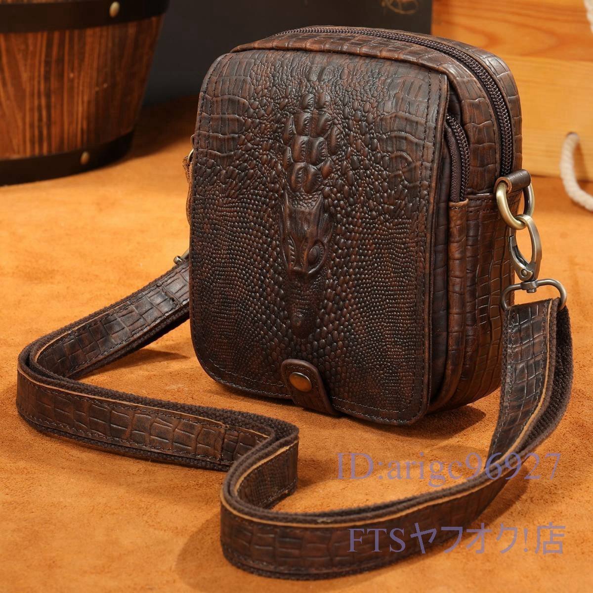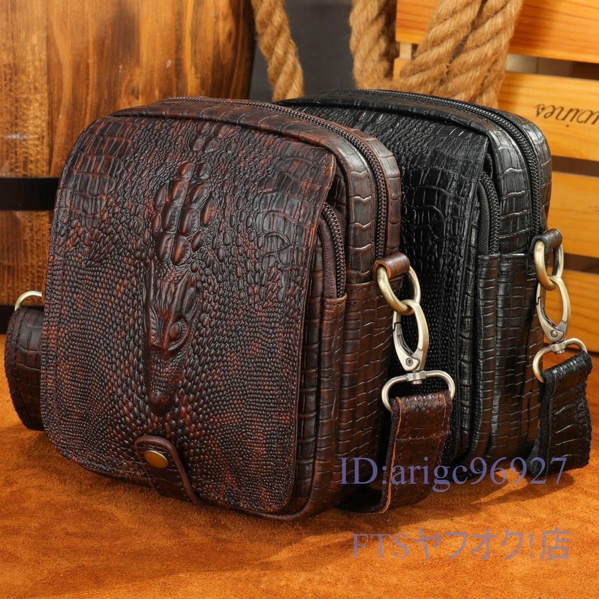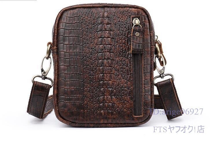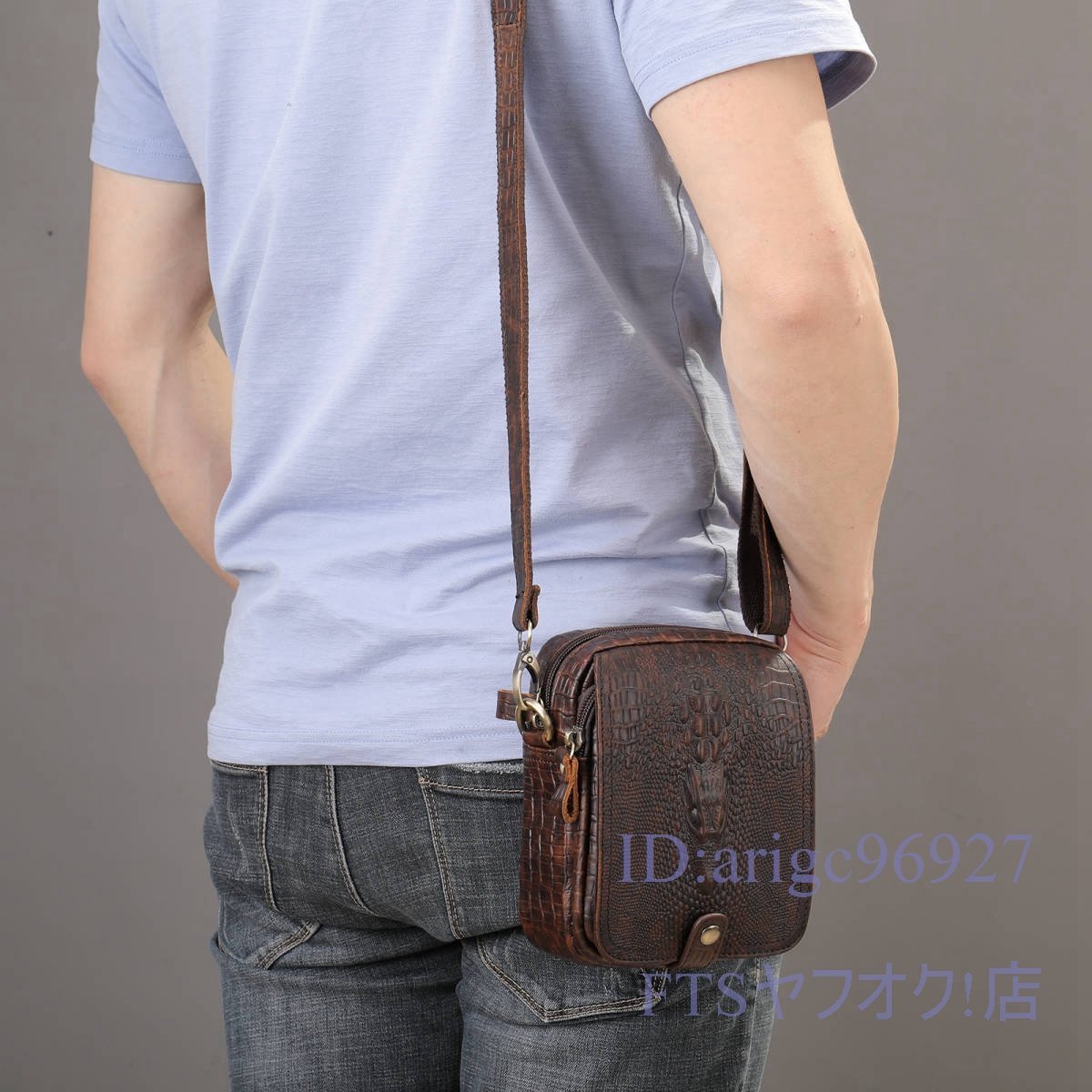 A2463☆新品上品 本革 牛革メンズ レザーバッグ クロコダイル型押し 斜めがけ ショルダーバッグ 男性 コーヒー