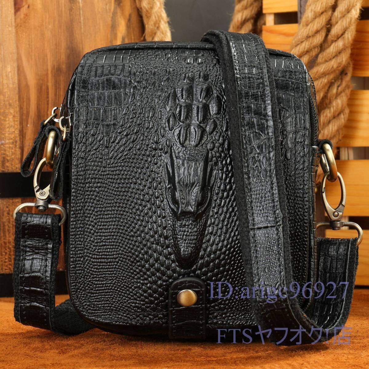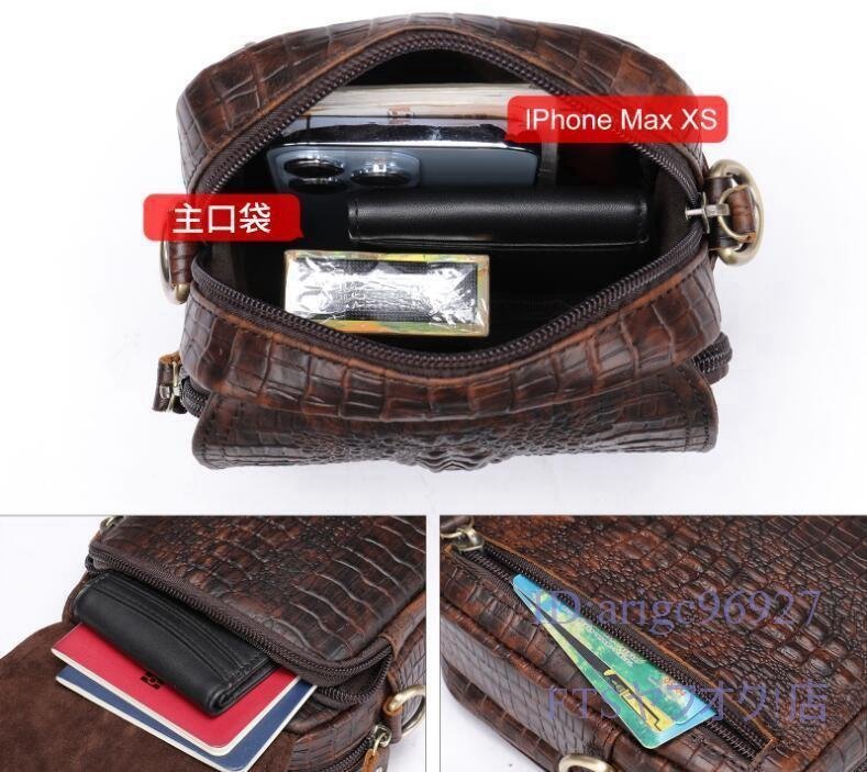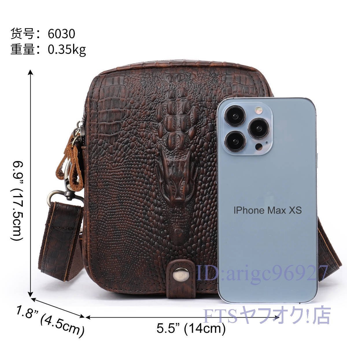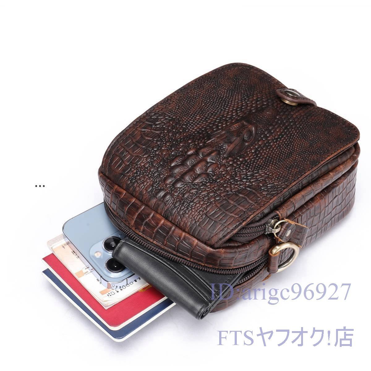 A2463☆新品上品 本革 牛革メンズ レザーバッグ クロコダイル型押し 斜めがけ ショルダーバッグ 男性 コーヒー