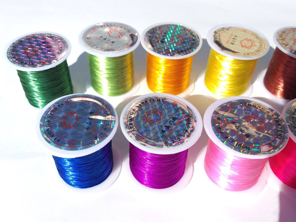 3枚目の写真をご覧ください。手元にこの種の扁円形の最高級、最耐久極品アクセサリー手工芸用100%0.8mm約25mシリコンゴムが合計11色あります。