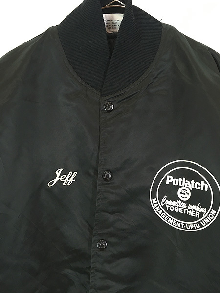 右胸ネーム刺しゅう、左胸とバックはプリント、フロント刻印入りスナップボタン。