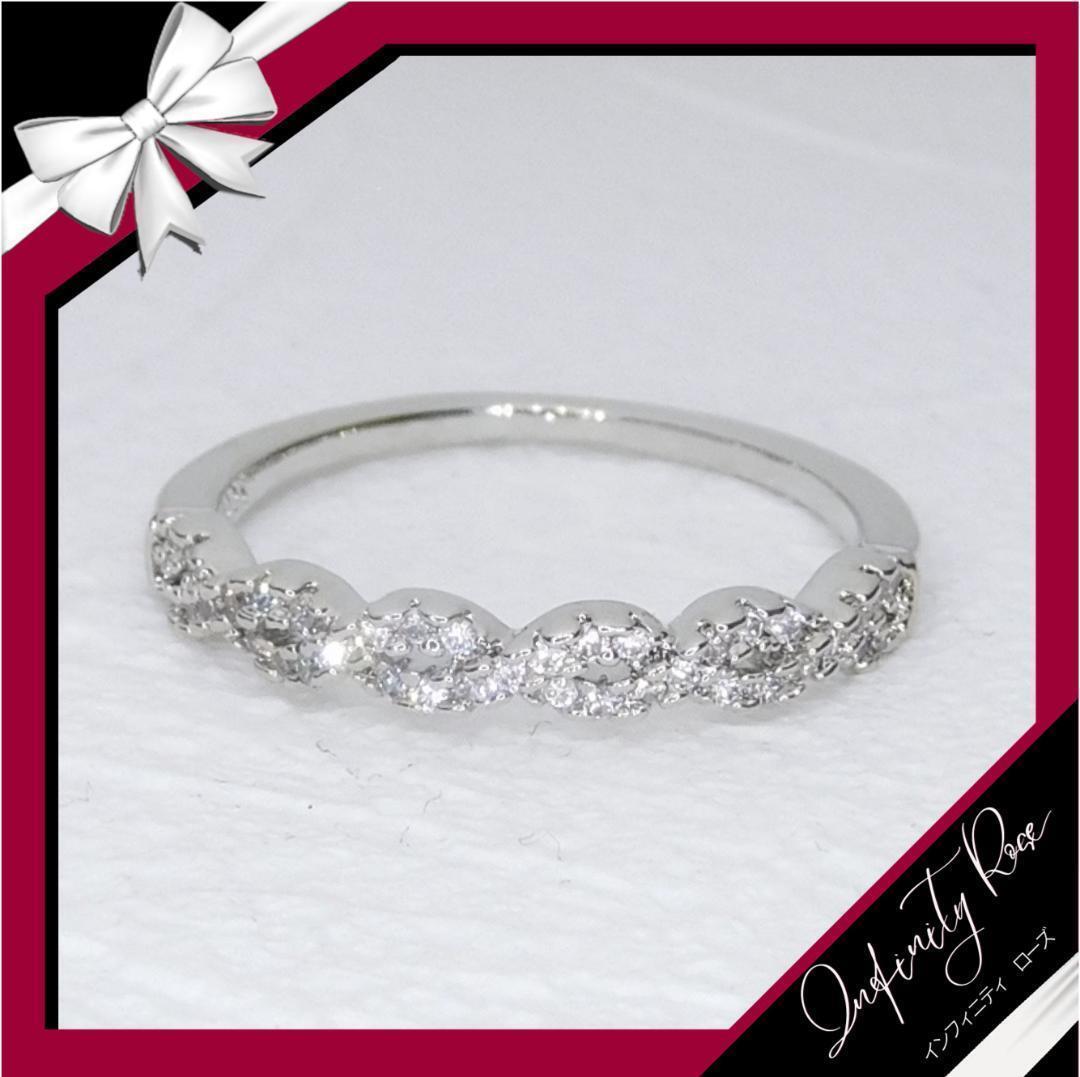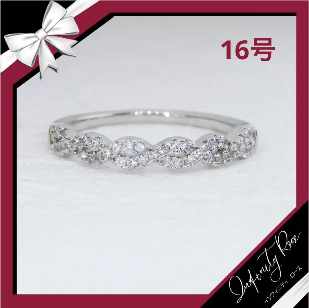 (R063S)16号 シルバー大人の女性ツイストクロス細リング 高価爪留 指輪