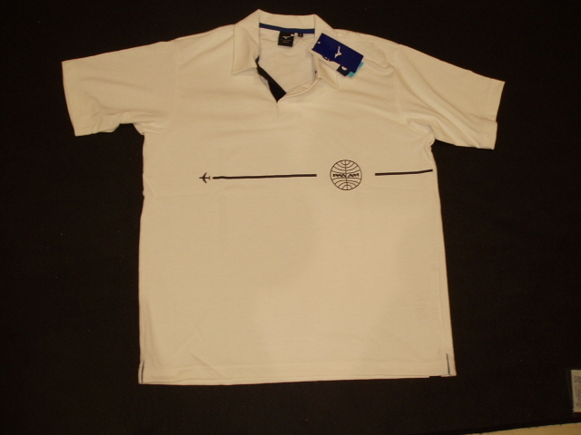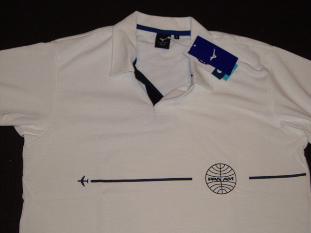MIZUNO[ミズノ] 半袖シャツ PANAM パンナム コントレール ポロ衿 吸汗速乾 UVカット(UPF15以上) 52JA1042 世界の空を飛び回る旅客機として人気を博した「PANAM(パンナム)」の、コントレール半袖ポロシャツです。 新品です。税込み定価:17,600円 men'sのMサイズ ゆき丈:46.5cm 身幅:55.5cm 着丈:68.5cm 他にもMIZUNO×PANAM多数出品中です。 | |||