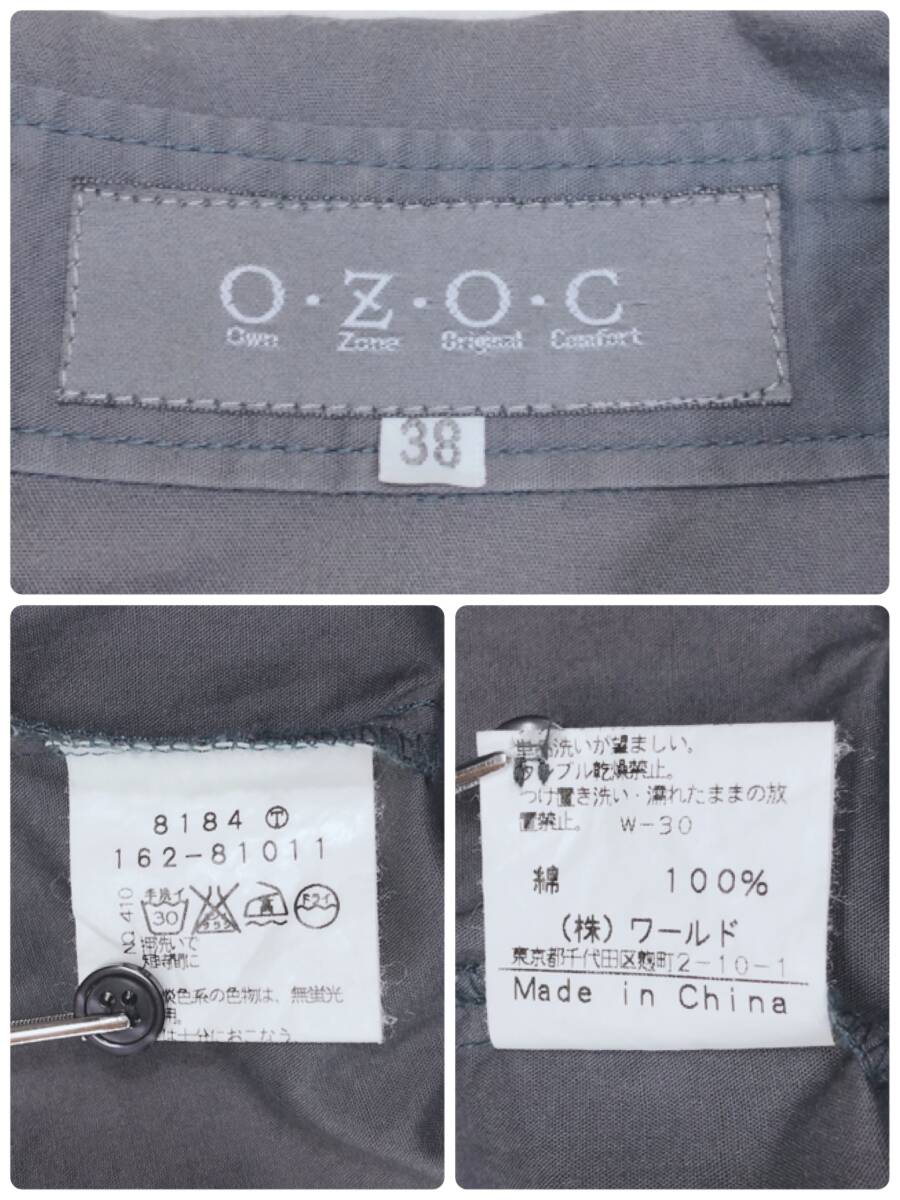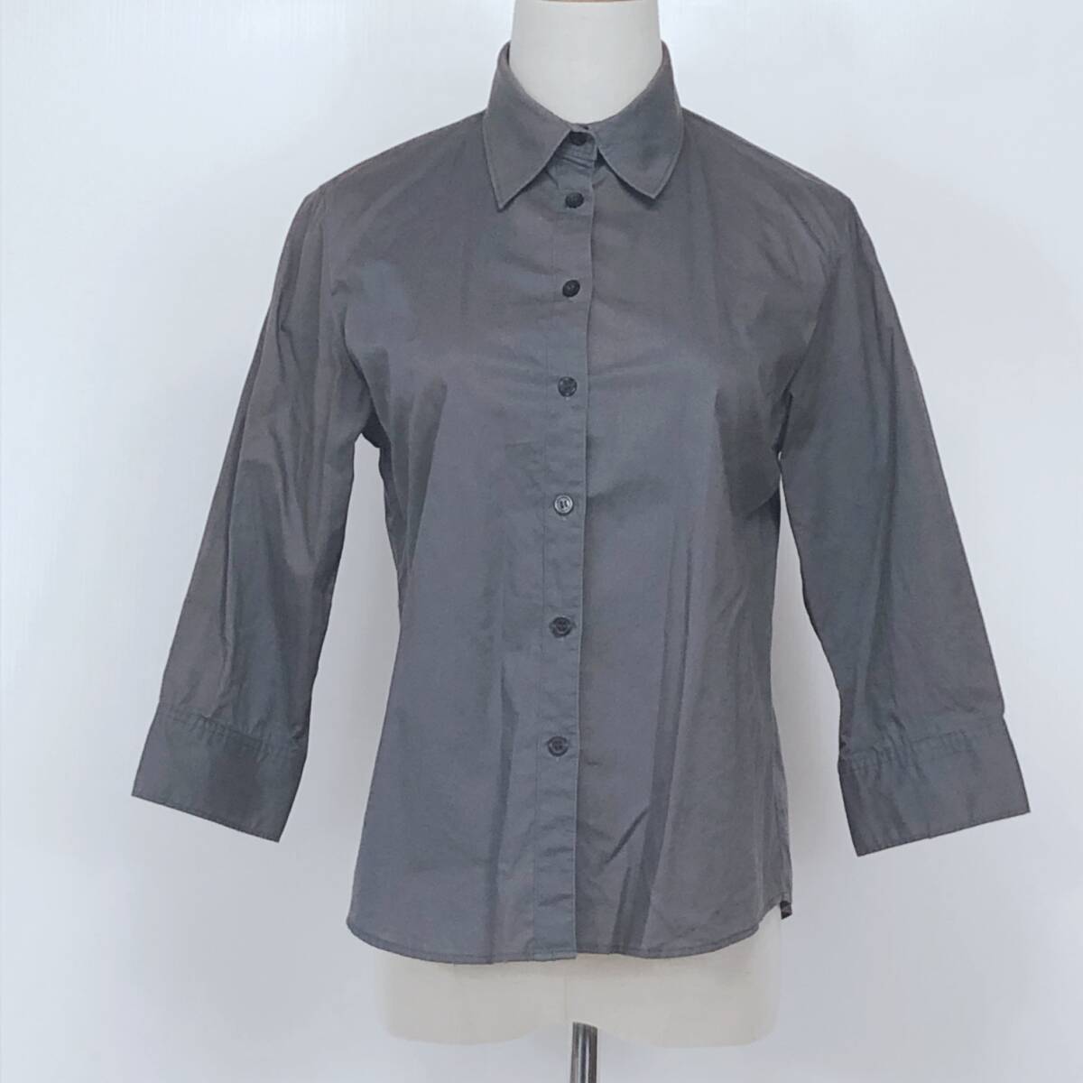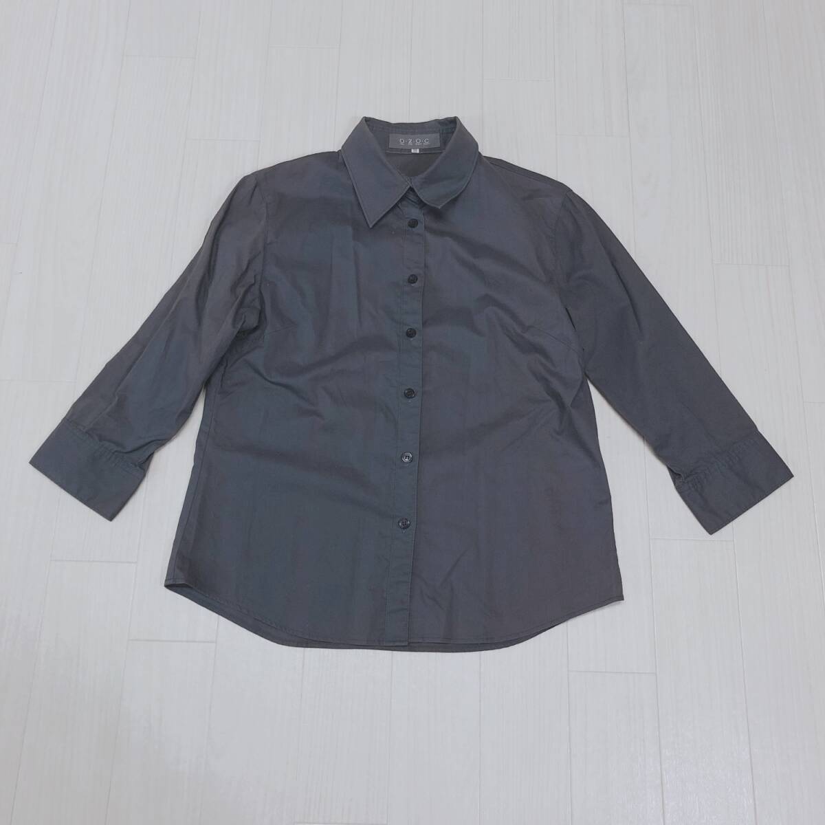 Y0923 OZOC オゾック レディース トップス シャツ 七分袖 38サイズ Mサイズ グレー 灰 無地 綿100% コットン シンプル エレガント 春夏