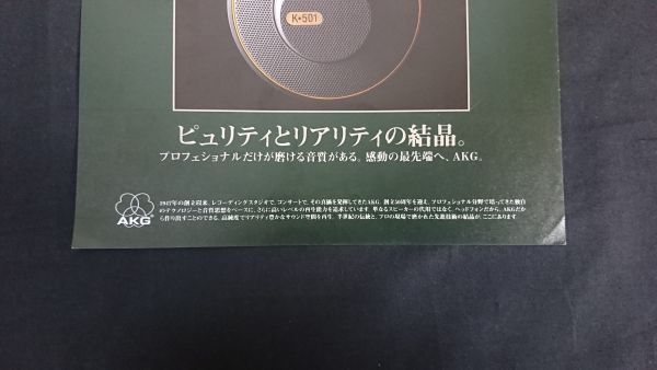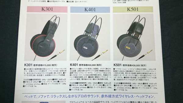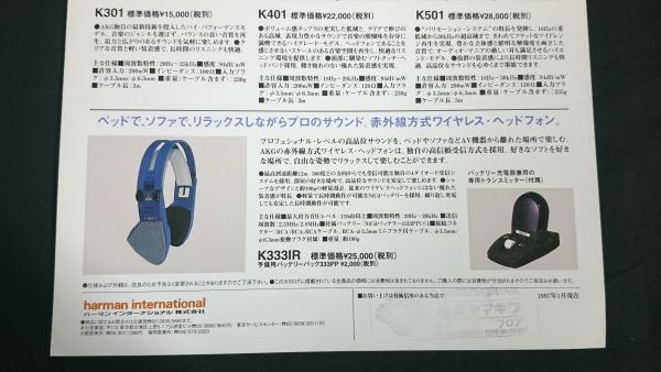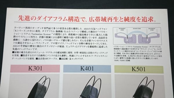 『AKG(アーカーゲー)acoustics PROFESSIONAL HEADPHONES(プロフェッショナル ヘッドホン) K301/K401/K501 カタログ 1997年1月』ハーマン インターナショナル株式会社 | |