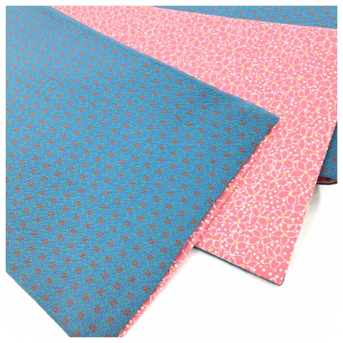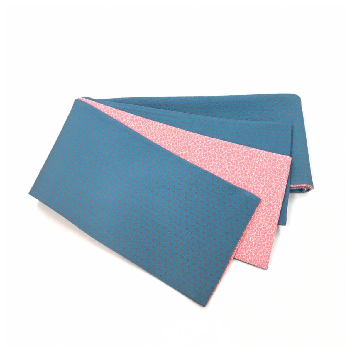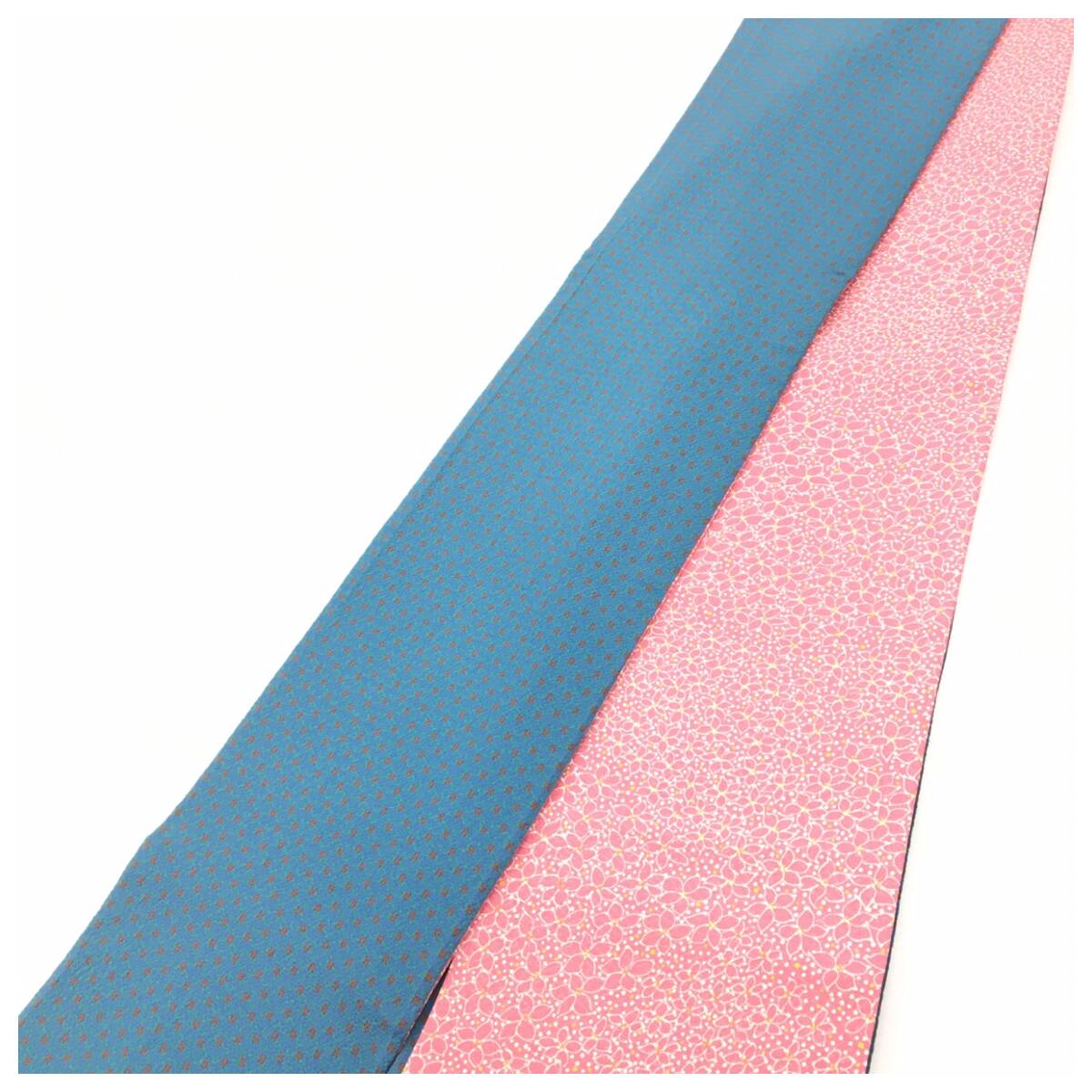 美品 上質 正絹 ピンクxブルー 半幅帯 長さ435 幅15 中古品です。