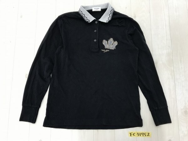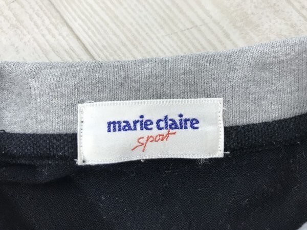 marie claire sport マリクレール レディース 日本製 綿 ロゴ刺繍 長袖ポロシャツ 黒 です。