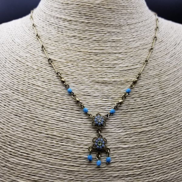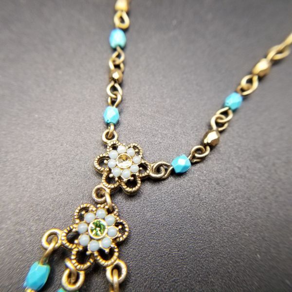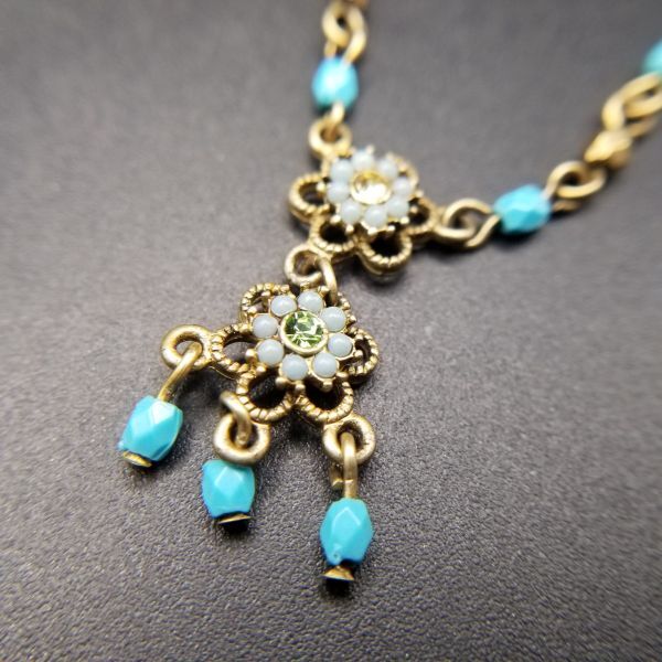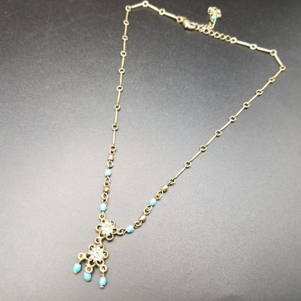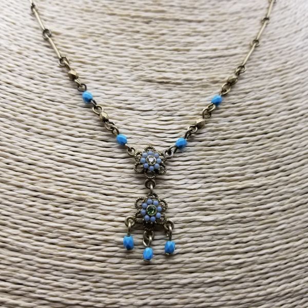 AVON SP 青いお花 チャーム 米国 ヴィンテージ ネックレス ペンダント レトロキュート コスチュームジュエリー バーチェーン ブルー系 SJB11