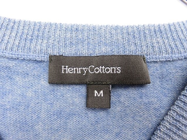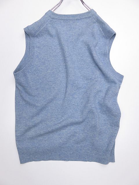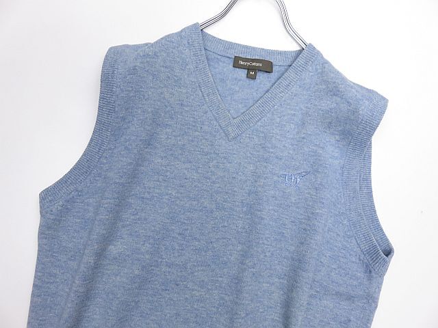 ヘンリーコットンズ ニットベスト 水色 ロゴ刺繍入り M