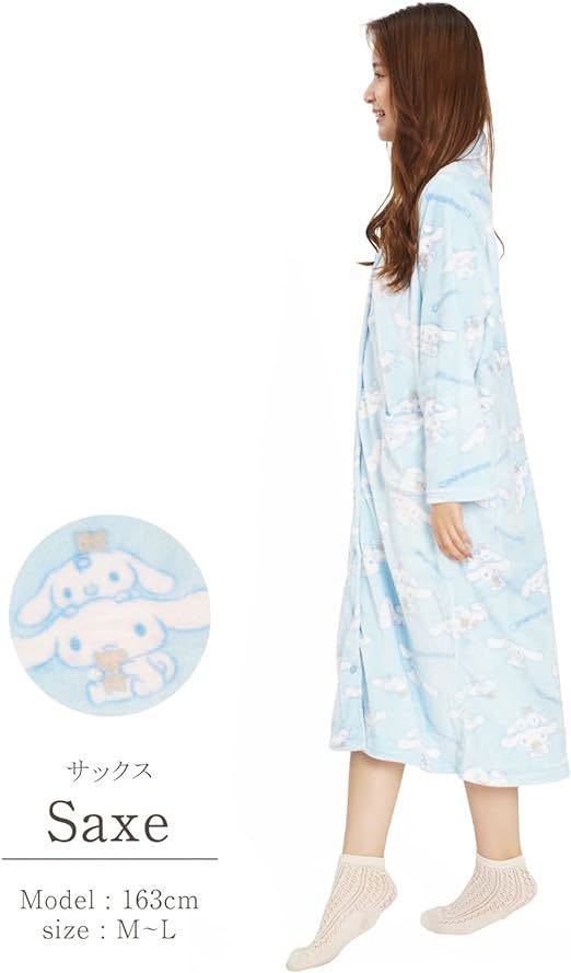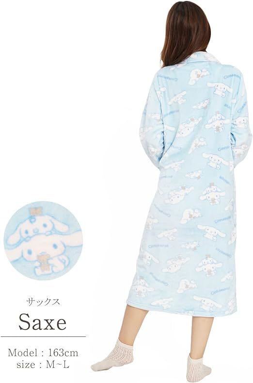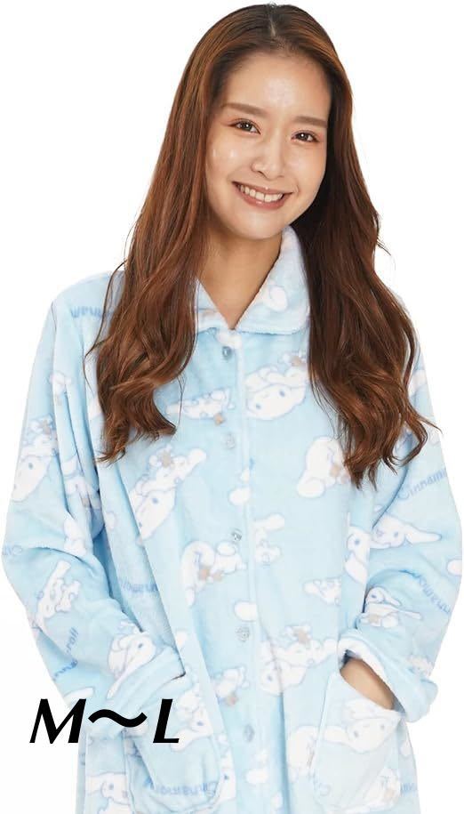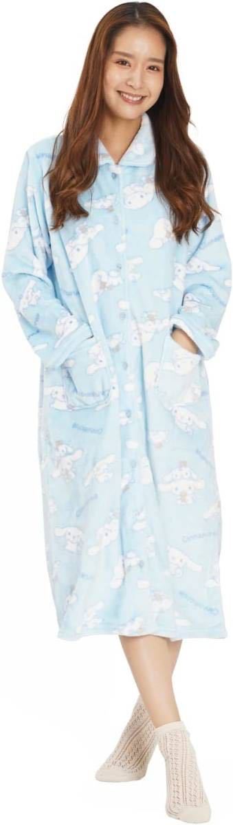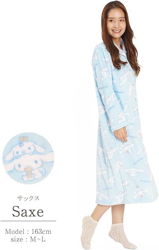 新品62120サザック SAN1574 シナモロール シナモン&みるく サックス フランネルワンピース サイズM〜L パジャマ ルームウエア
