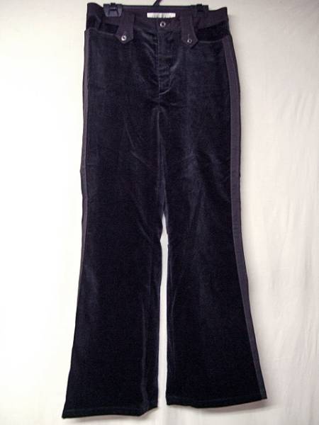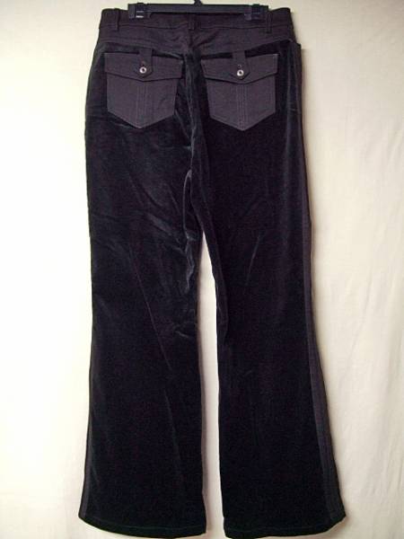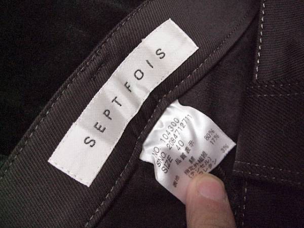 SEPT FOIS ブーツカットベロアパンツです。色は黒×茶 ストレッチ性有ります。◆表地 綿80% 指定外繊維(テンセル)17% ポリウレタン3% 別布 レーヨン51% ナイロン43% ポリウレタン6% スレキ 綿100%◆表記サイズ…40 実寸サイズ…ウエスト約69cm 股下約67cm 腿幅約27cm 裾幅約24.5cm◆USEDですが状態は美品です。◆